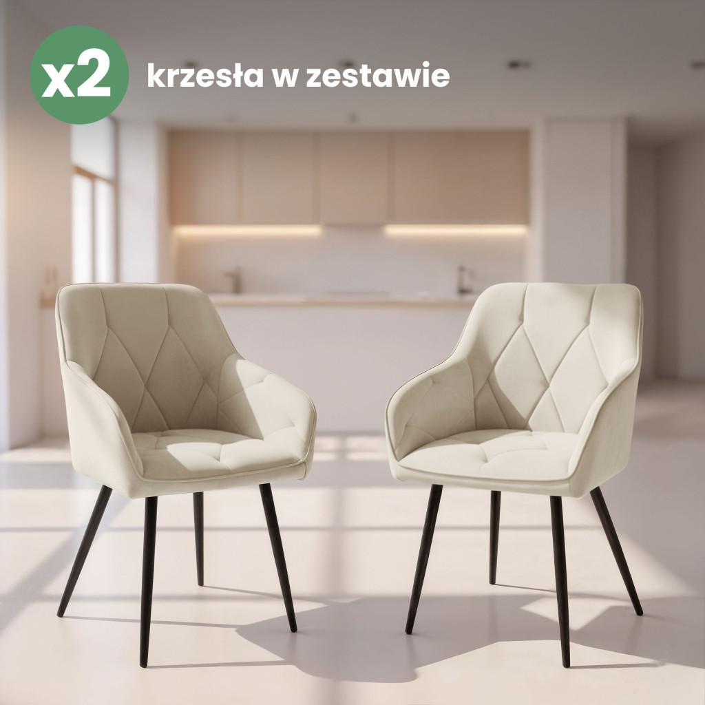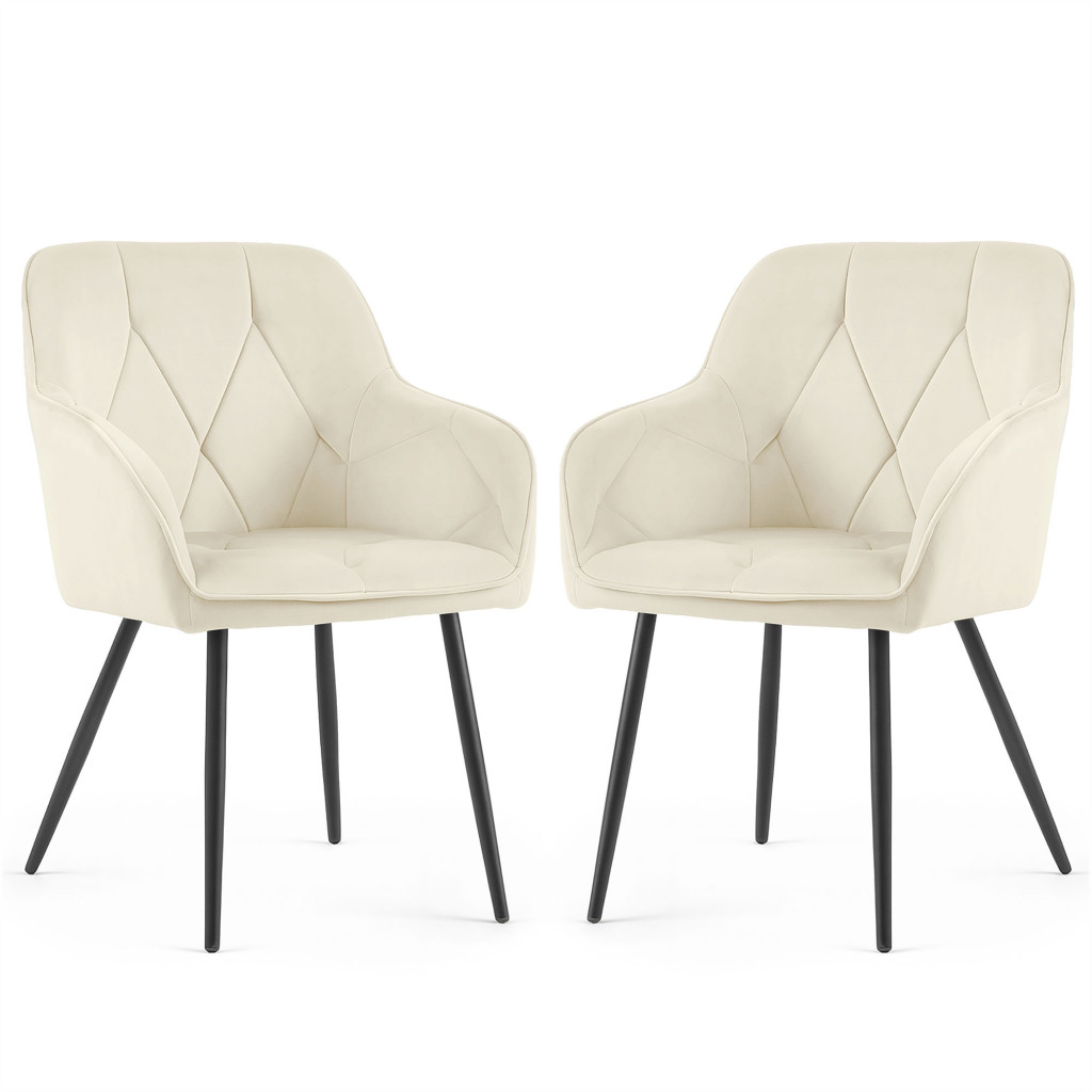 Ez a sokoldalú szék tökéletesen illeszkedik mind a modern, mind a klasszikus berendezésekbe. A krém színű velúr kárpitozás elegáns hangulatot teremt, miközben a fekete lábak kortárs kontrasztot adnak. A szék 120 kg-os teherbírása és gondosan megtervezett méretei biztosítják, hogy hosszú évekig szolgálja Önt. A készlet 2 széket tartalmaz, így azonnal kialakíthatja álmai étkezőjét.