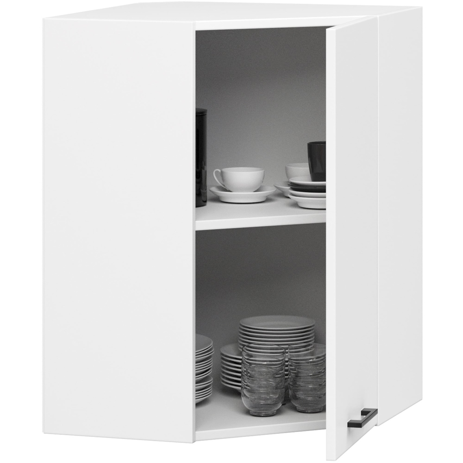 Praktikus sarok felső konyhaszekrény az Oliwia kollekcióból, matt fehér kivitelben, ideális megoldás a konyhai sarokterek maximális kihasználására.