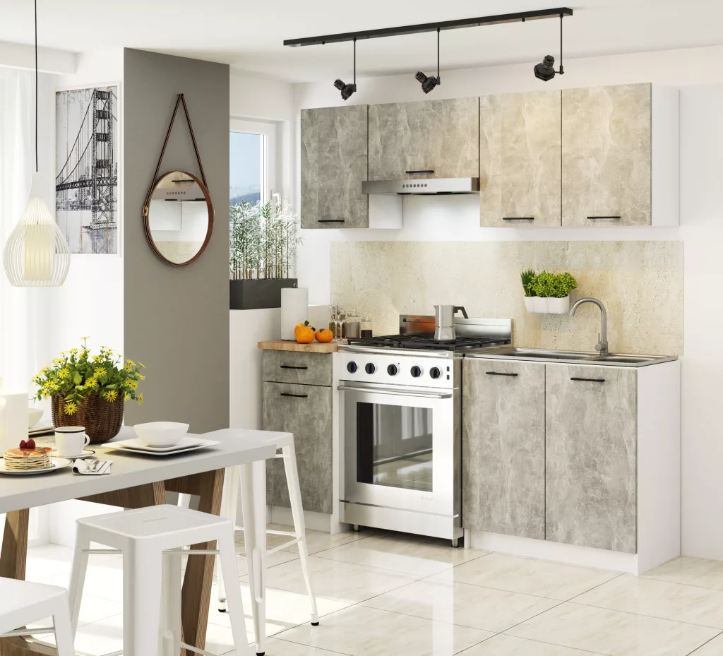 AKORD Oliwia Fali Konyhaszekrény Laminált Fehér-Beton Matt KS0POLIBIABET006H580