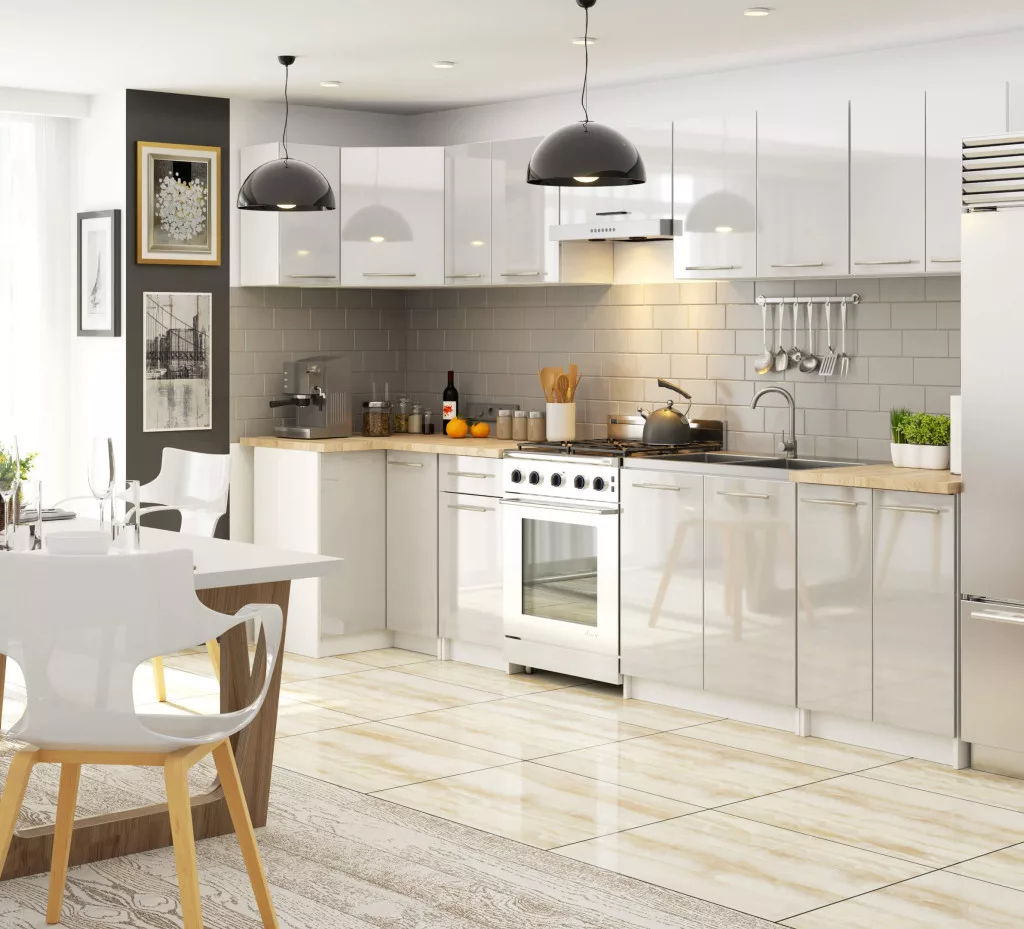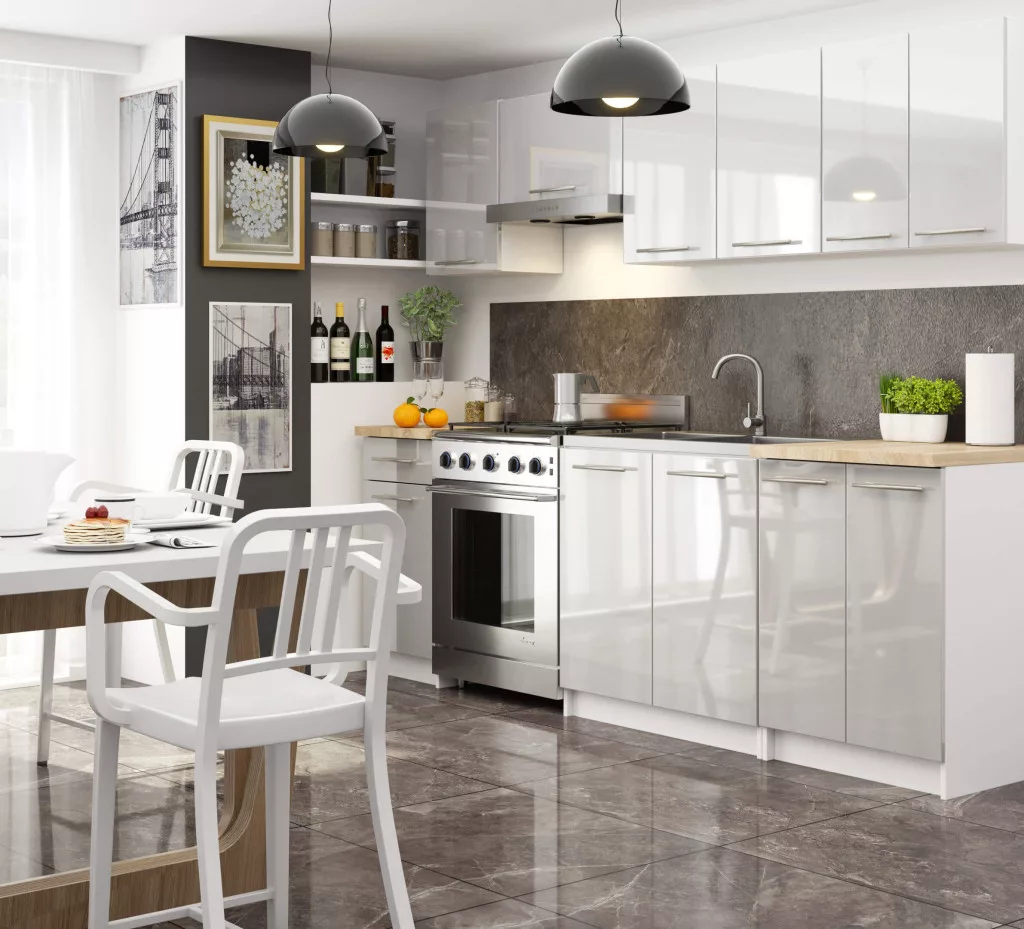 AKORD Oliwia Konyhai Fiókos Szekrény Laminált Fehér-Metál Magasfényű KS0POLIBIAMETPOL3S007
