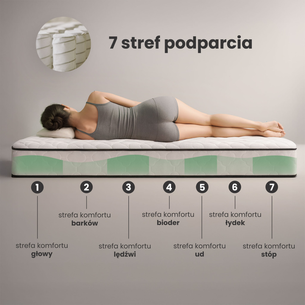 • 24 cm magas rugós mag: A nagyobb magasság fokozott kényelmet és jobb izolációt biztosít az ágykeret felületétől