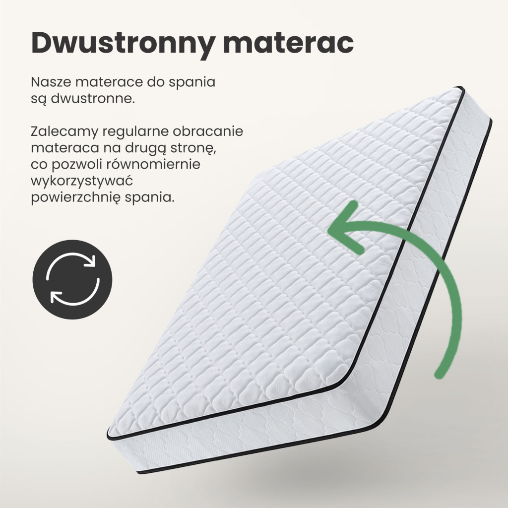 Ez a matrac ideális két fő számára, személyenként maximum 100 kg terhelhetőséggel. A rugós rendszer kiváló légáteresztést biztosít, megakadályozva a nedvesség felhalmozódását és kellemes alvási környezetet teremtve. A matrac ergonomikus kialakítása alkalmazkodik a test kontúrjaihoz, miközben megfelelő támasztást nyújt a hát és a gerinc számára, így frissen ébredhet minden reggel.