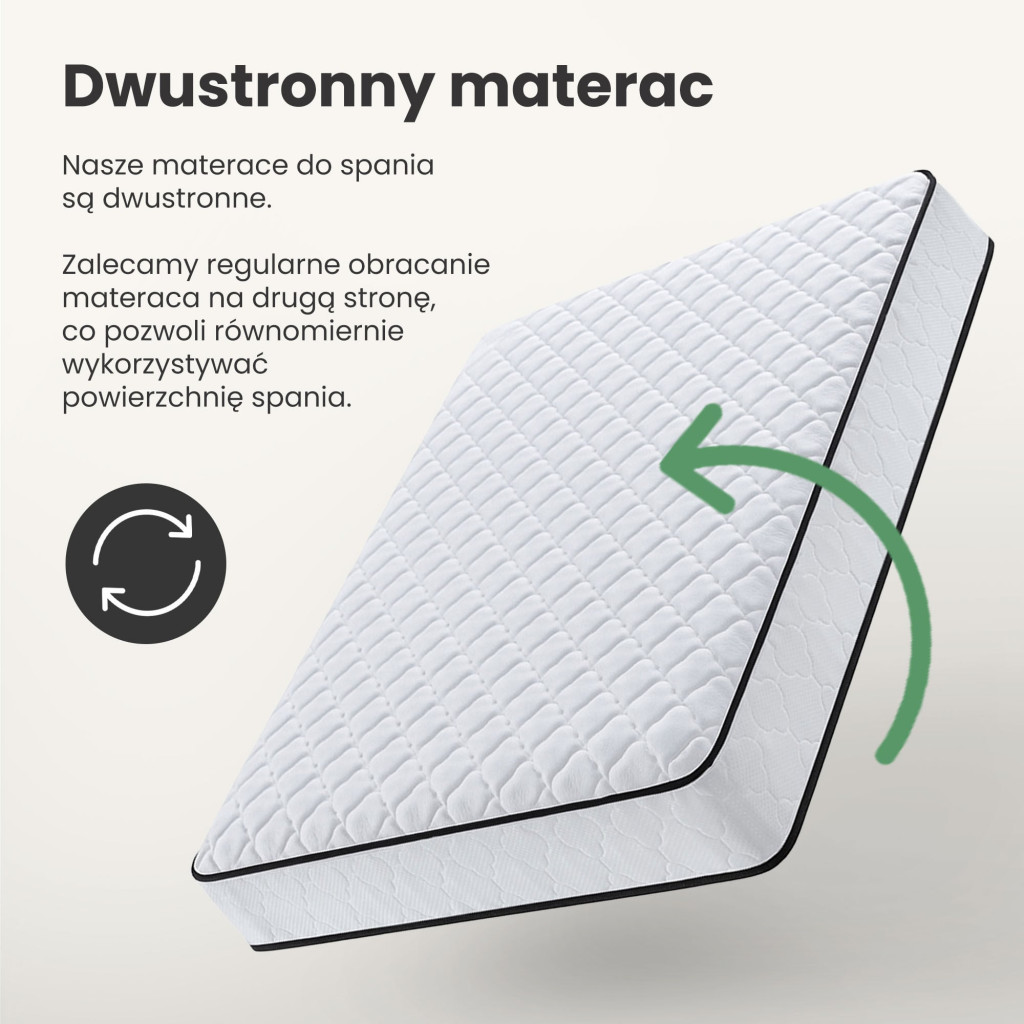 A 160x200 cm-es rugós matrac közepes keménységgel (H3) és védőhuzattal biztosítja a kényelmes alvást. Ideális nagy kétágyas ágyakhoz, akár 100 kg/fő terhelhetőséggel.