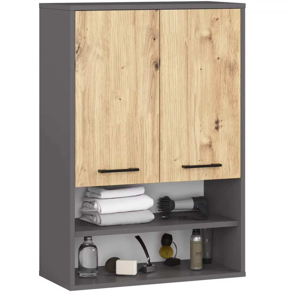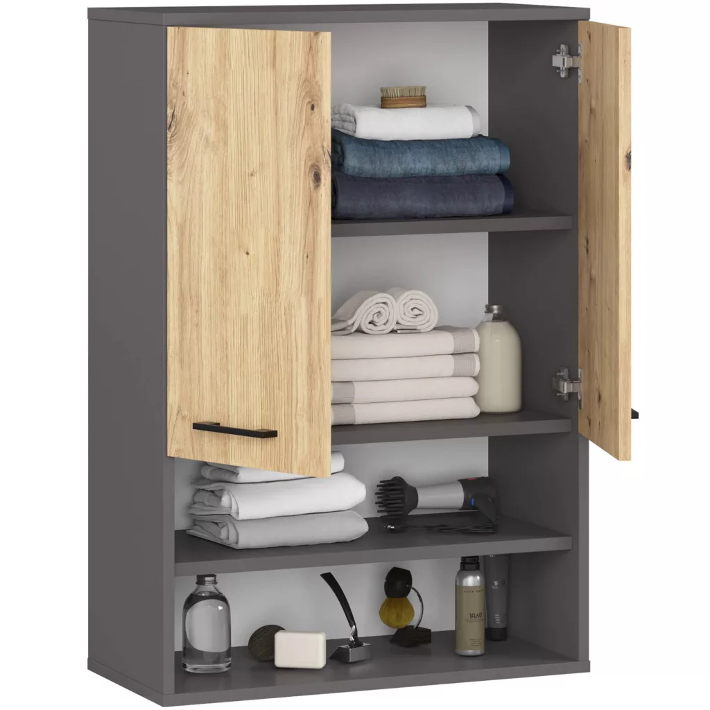 AKORD FIN Fürdőszobai Fali Szekrény Grafit Szürke/Artisan Tölgy 64cm