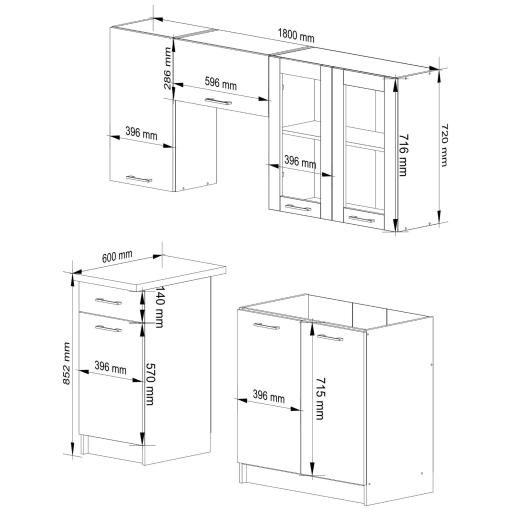 Az Oliwia konyhabútor szett letisztult vonalvezetésével és praktikus kialakításával ideális választás modern otthonokba. A 180 cm széles szettben található üvegvitrines felsőszekrény elegáns megjelenést kölcsönöz, míg a beépített fiók és polcok maximális tárolóhelyet biztosítanak.