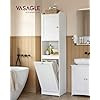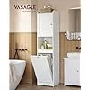 VASAGLE Magas Fürdőszobai Szekrény Szennyestartóval Felhőfehér