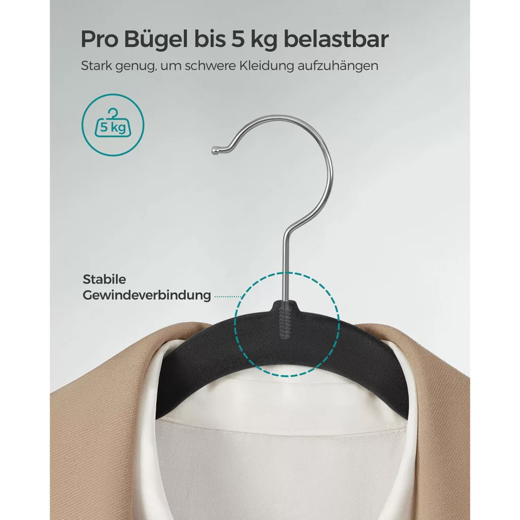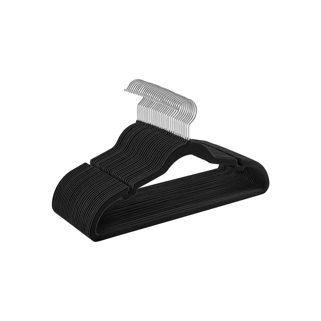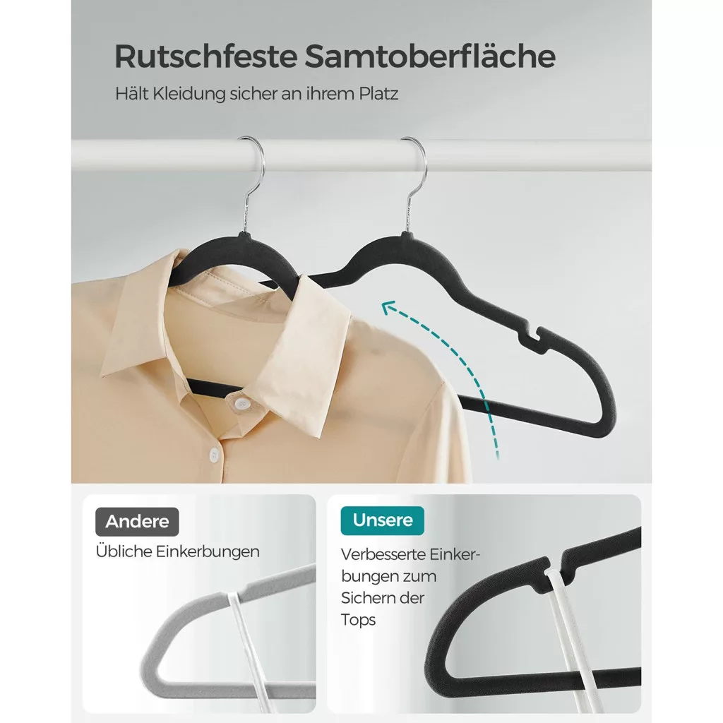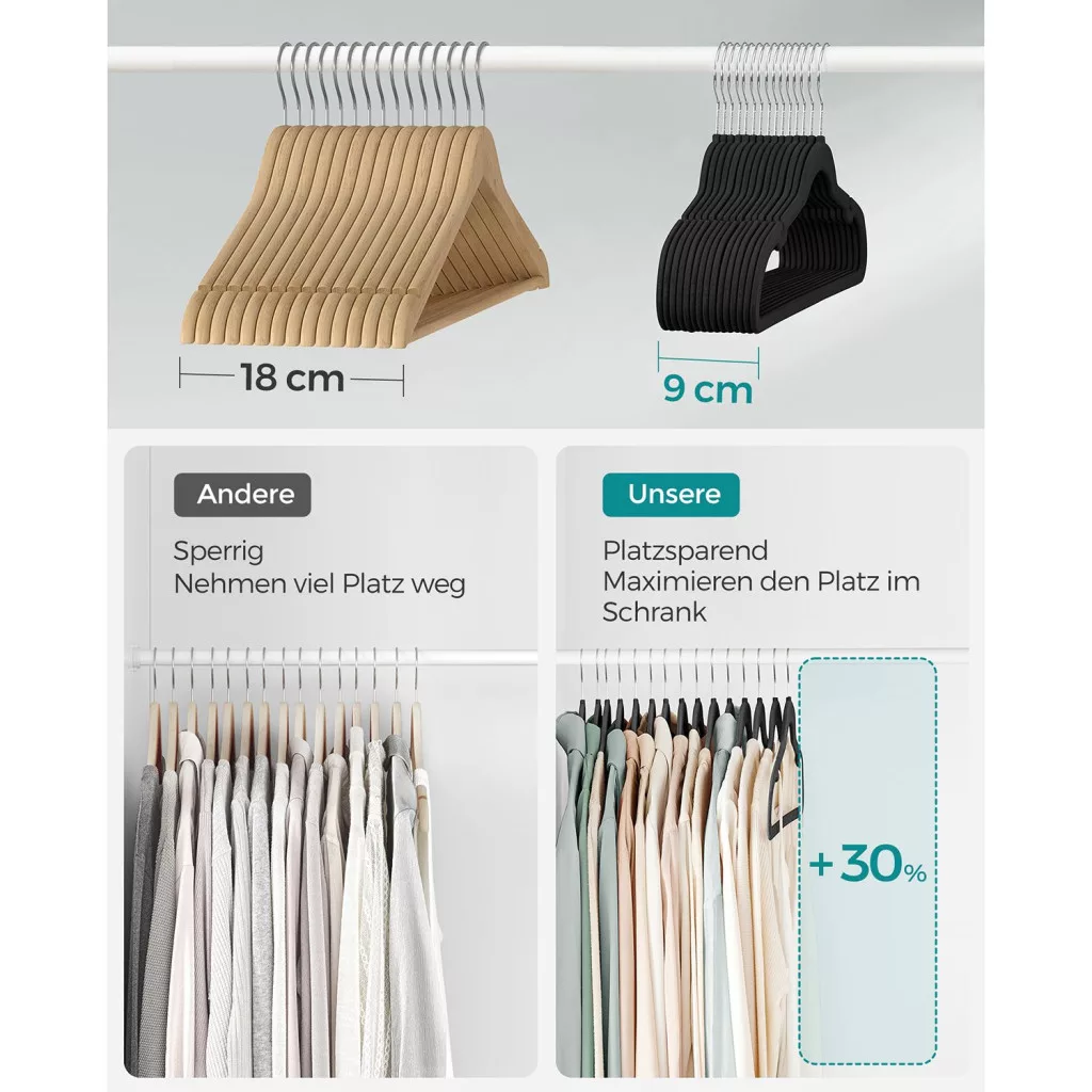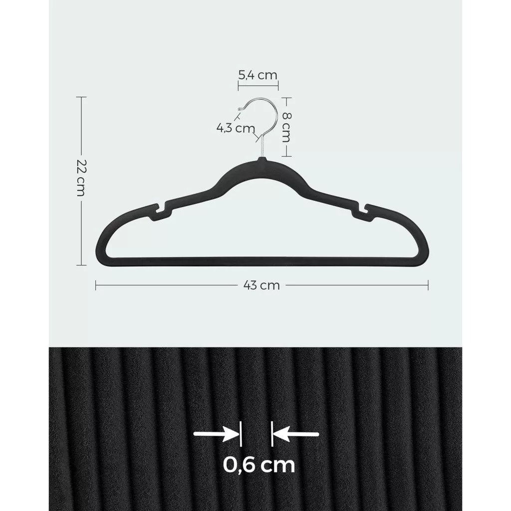 SONGMICS Bársony Vállfa Szett 30 db Csúszásmentes Fekete Ruhaakasztó