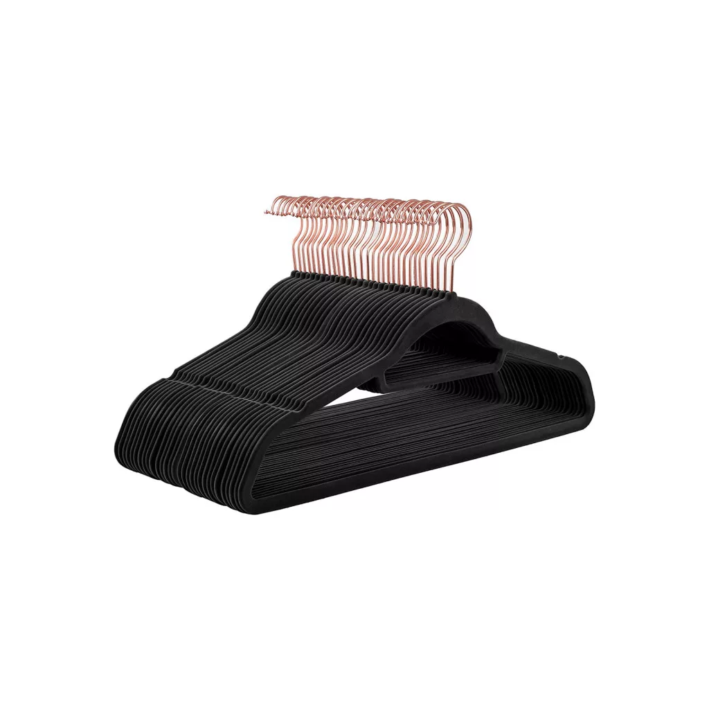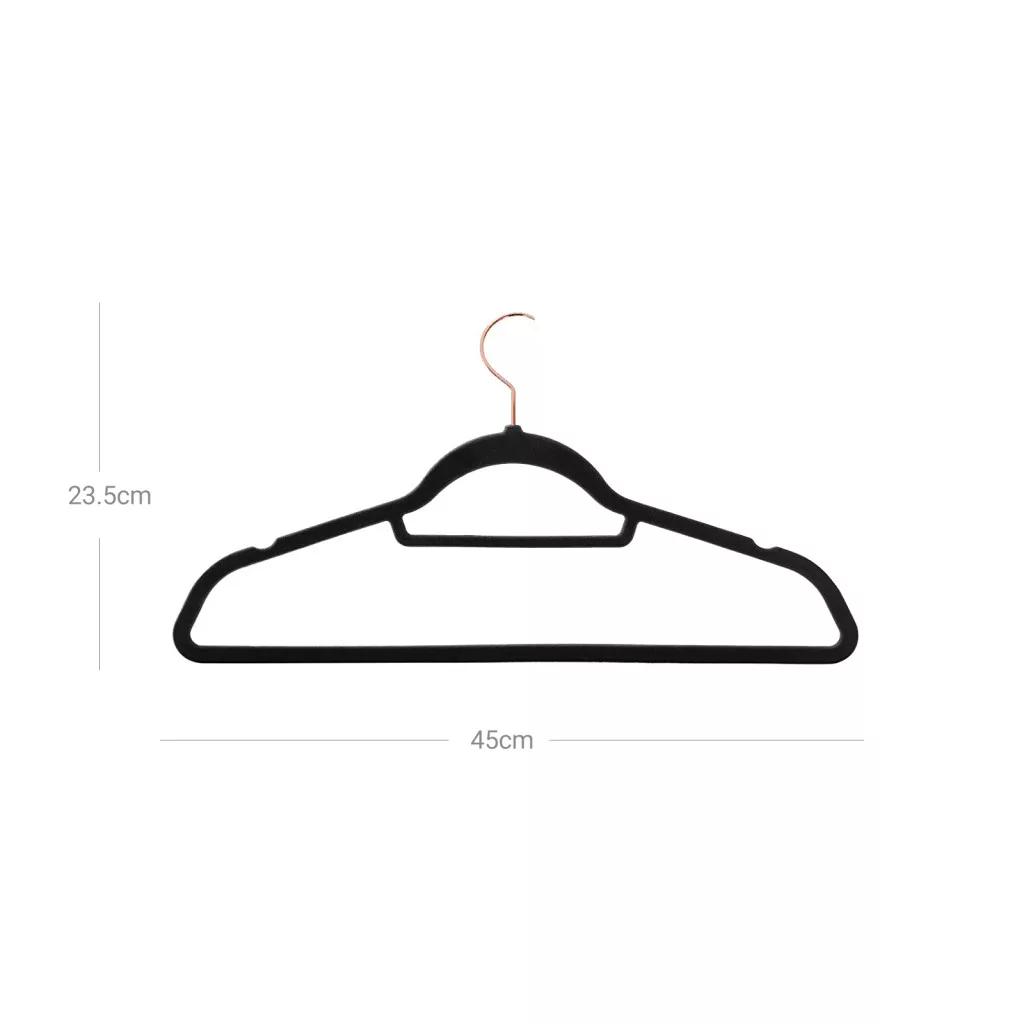 SONGMICS Prémium Bársony Vállfa Szett Rózsaarany Akasztóval Fekete 30 db