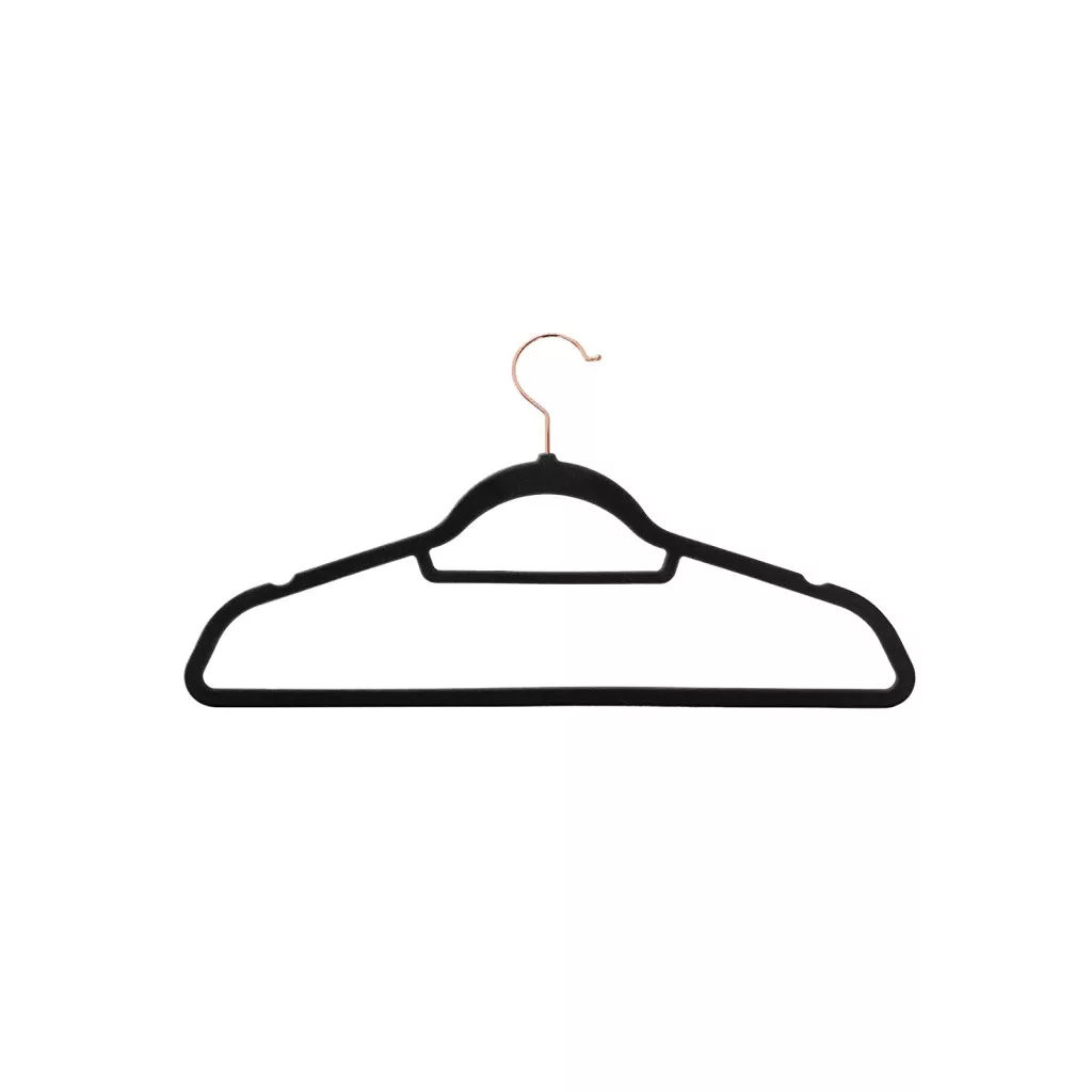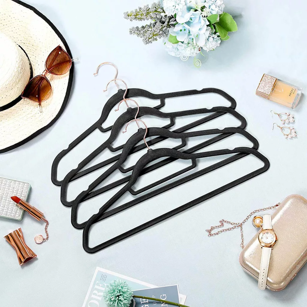 Elegáns, helytakarékos bársony vállfa szett rózsaarany akasztókkal, amely csúszásmentes felületével tökéletesen óvja ruháit.
