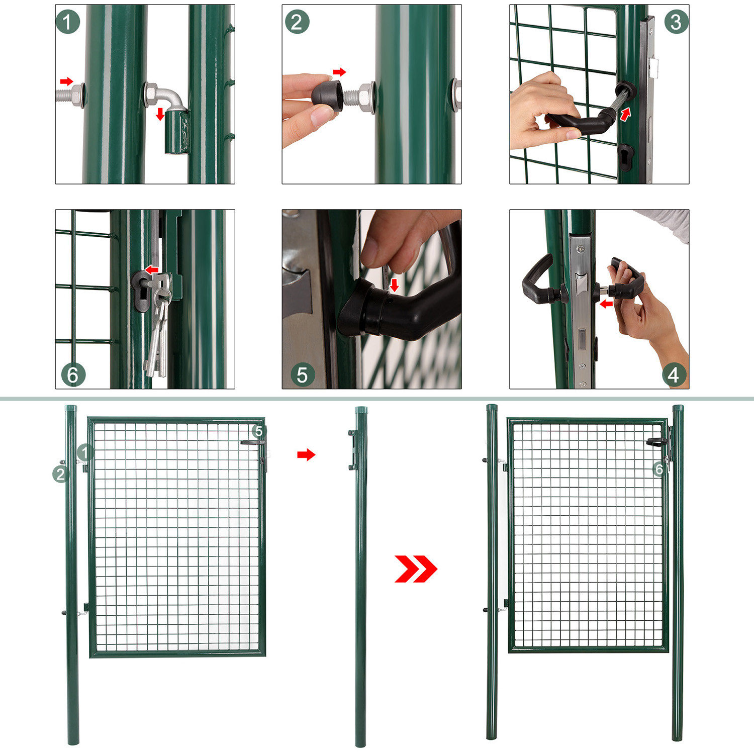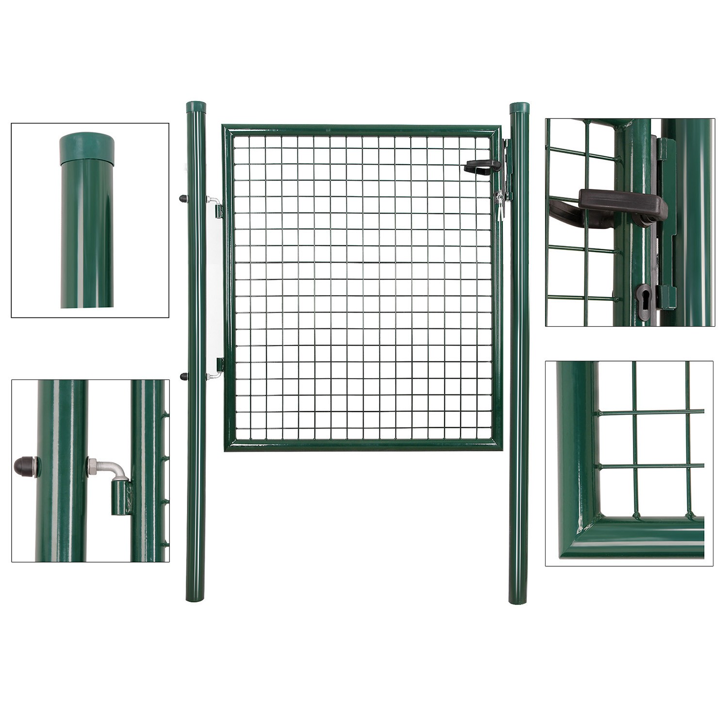 SONGMICS Horganyzott Acél Kerti Kapu Zöld Zárható 87 x 100 cm