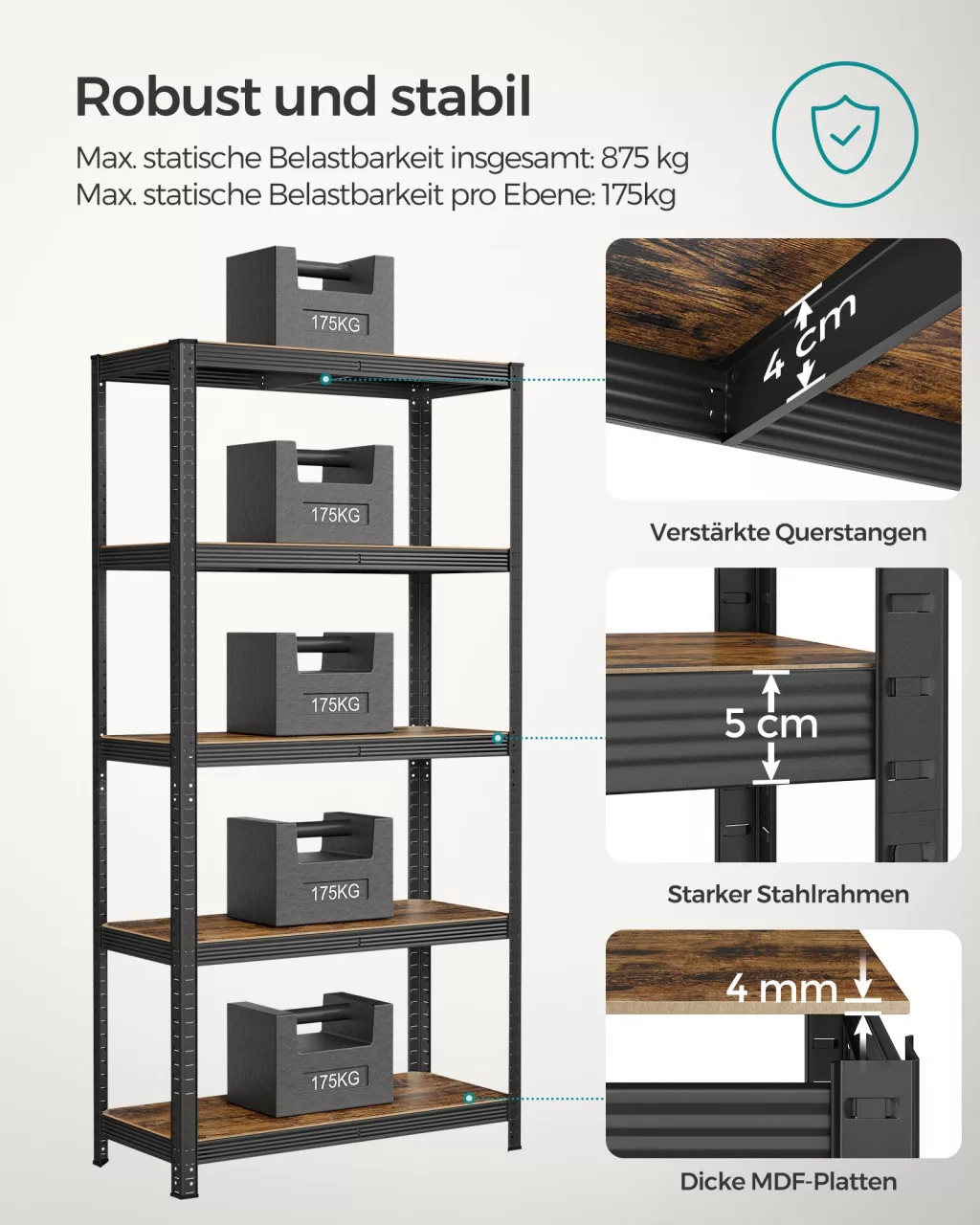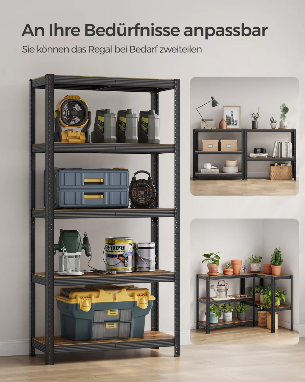 SONGMICS Ipari Polcrendszer Rusztikus Barna-Fekete 875 kg Teherbírású Állítható Tárolóállvány