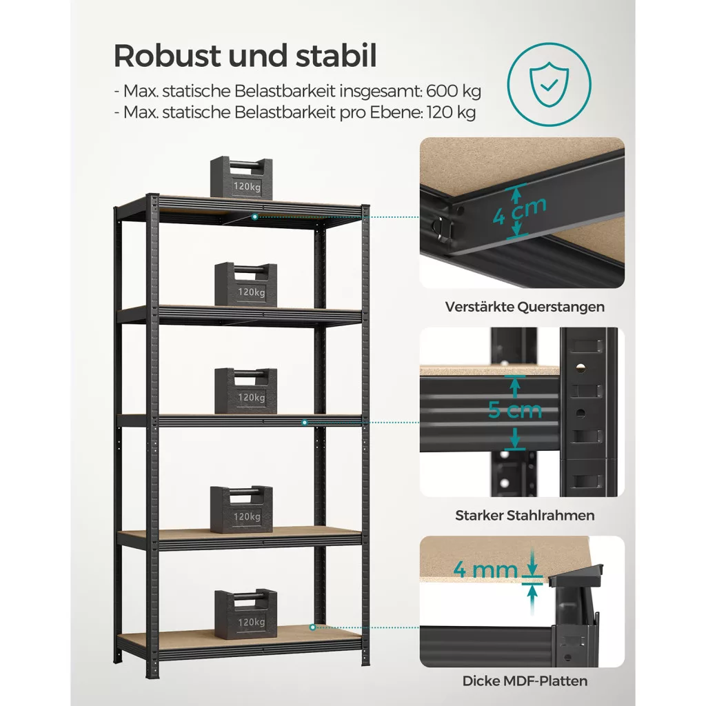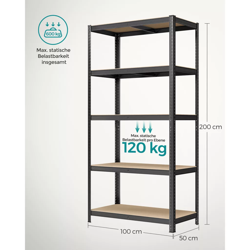 SONGMICS Nagy Teherbírású Acél Polcrendszer Szett Fekete 600 kg
