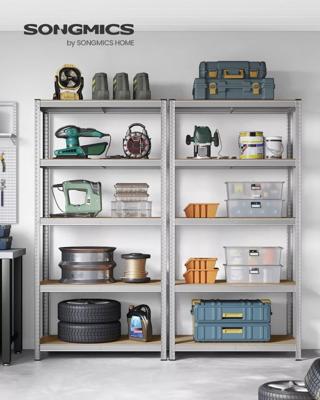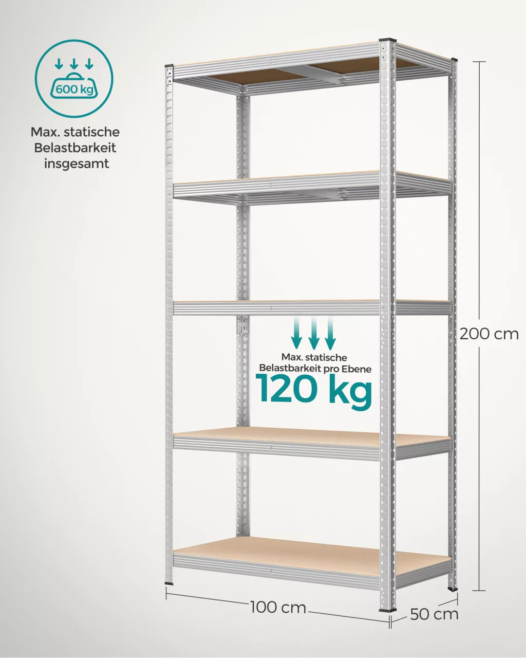 SONGMICS 5-szintes Ipari Tárolóállvány Acél Vázzal 600 kg Teherbírással Ezüst