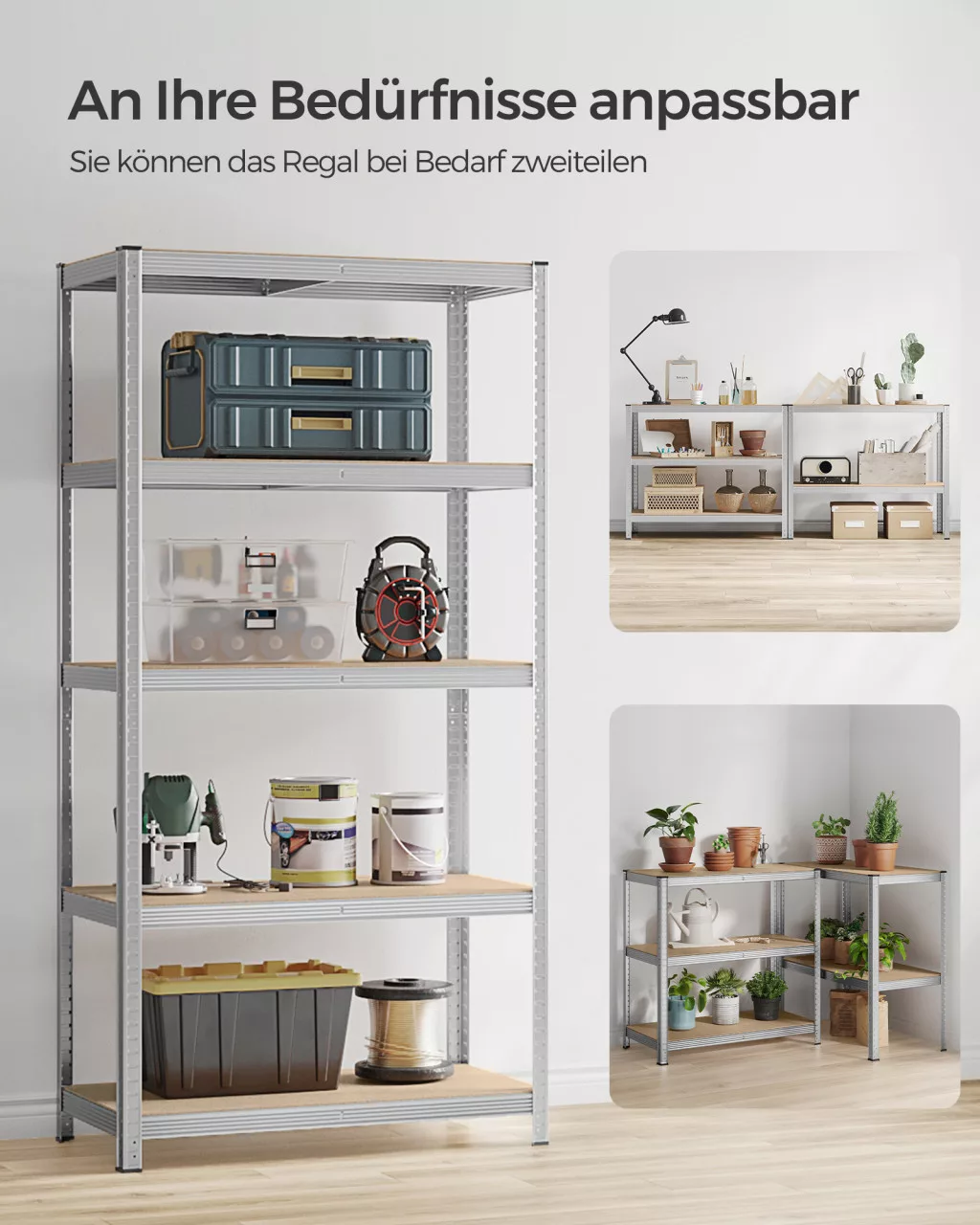 Ez a robusztus acélvázas polcrendszer tökéletes megoldást nyújt a nagyobb teherbírást igénylő tárolási feladatokhoz. A polcok 5 centiméterenként állíthatók, így rugalmasan alakítható a különböző méretű tárgyak tárolásához. Az MDF polclapok és a megerősített acélkeret együttesen biztosítják a kiemelkedő stabilitást.