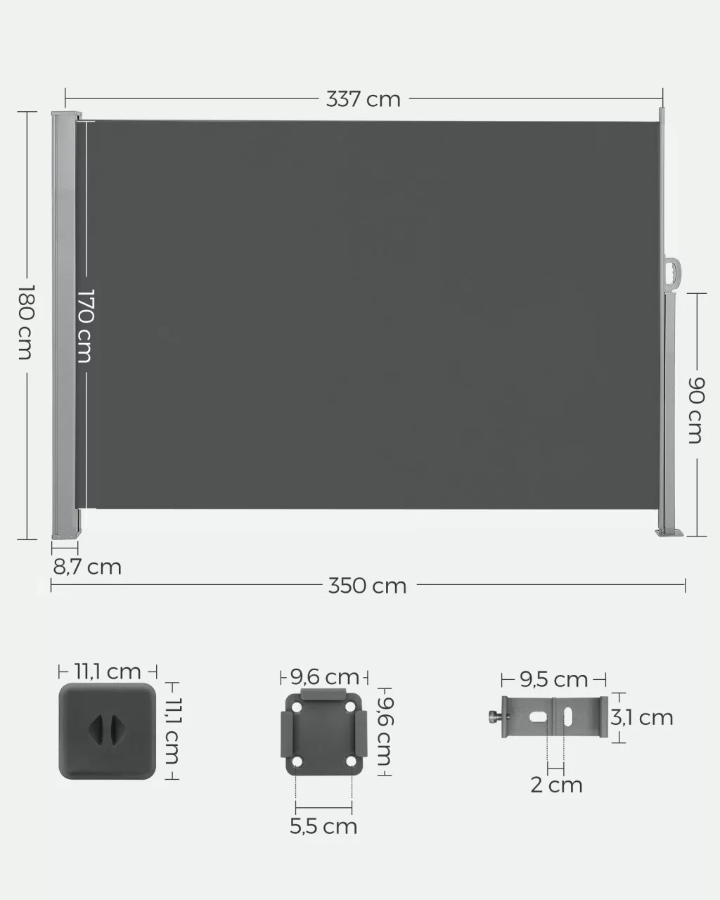 SONGMICS Kihúzható Oldalsó Napellenző Teraszhoz Füstszürke 180 x 350 cm