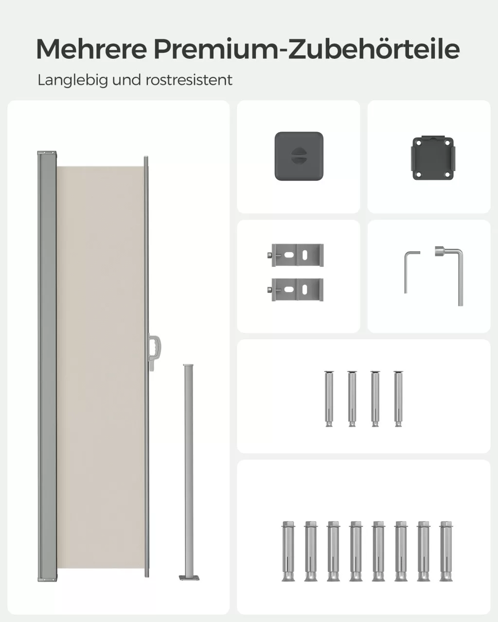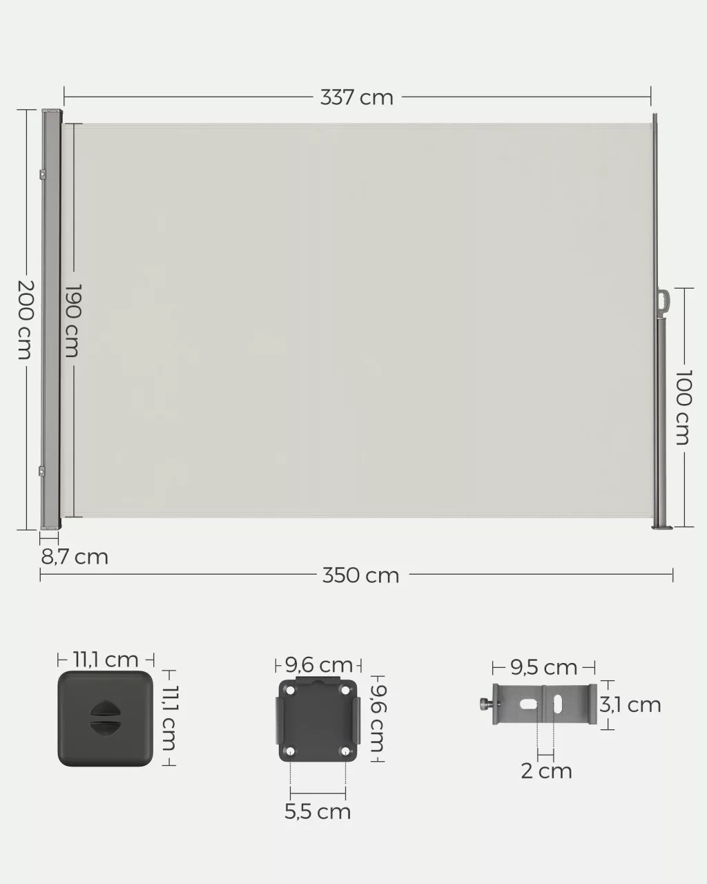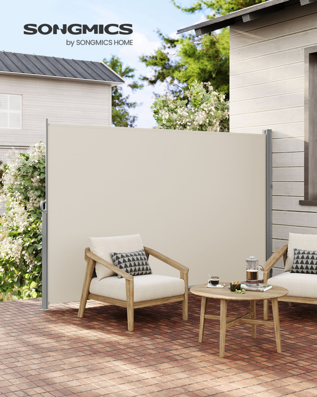 SONGMICS 200 x 350 cm Oldalsó Napellenző Teraszhoz és Erkélyhez Bézs GSA205E02