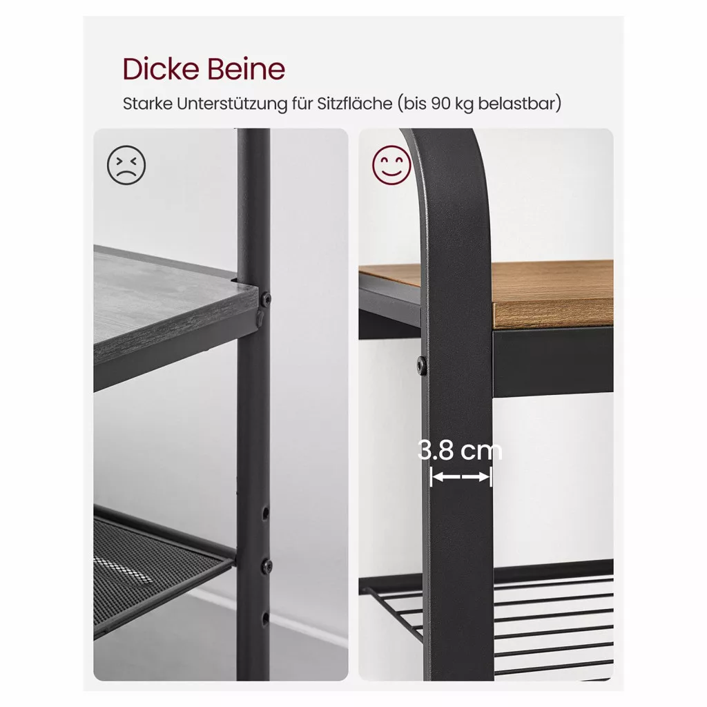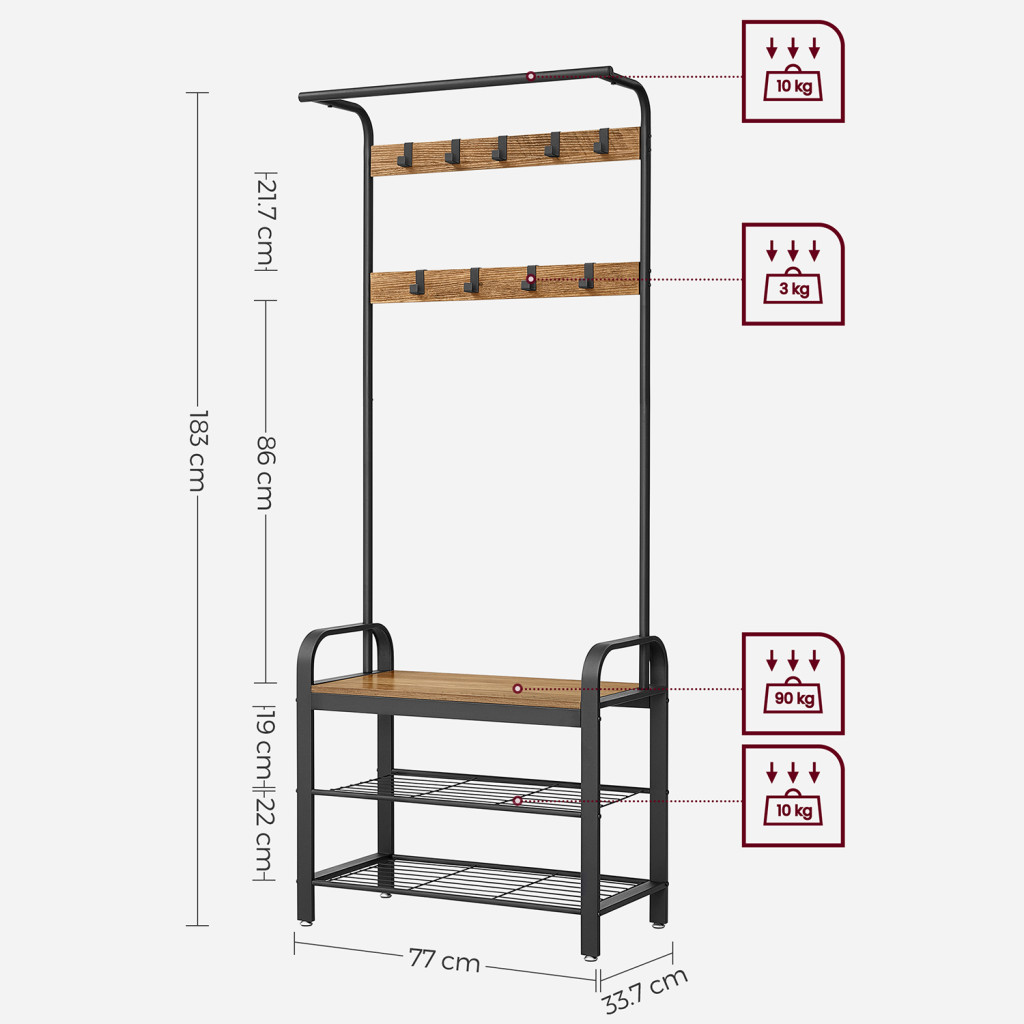 VASAGLE Industrial Előszobai Állófogas Cipőtárolóval Rusztikus Dió-Fekete