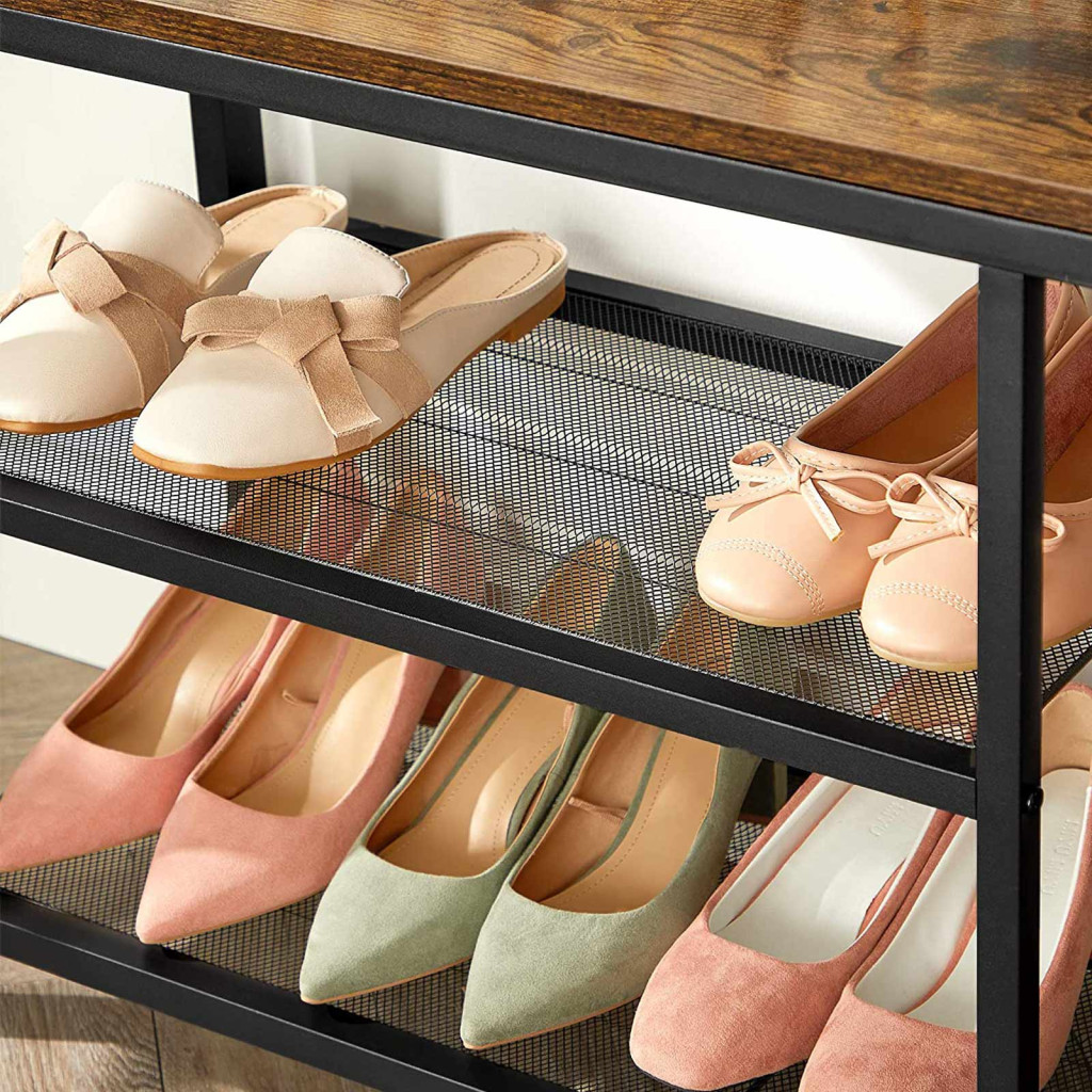 VASAGLE Ipari Stílusú Előszobafal Cipőspaddal Rusztikus Barna-Fekete