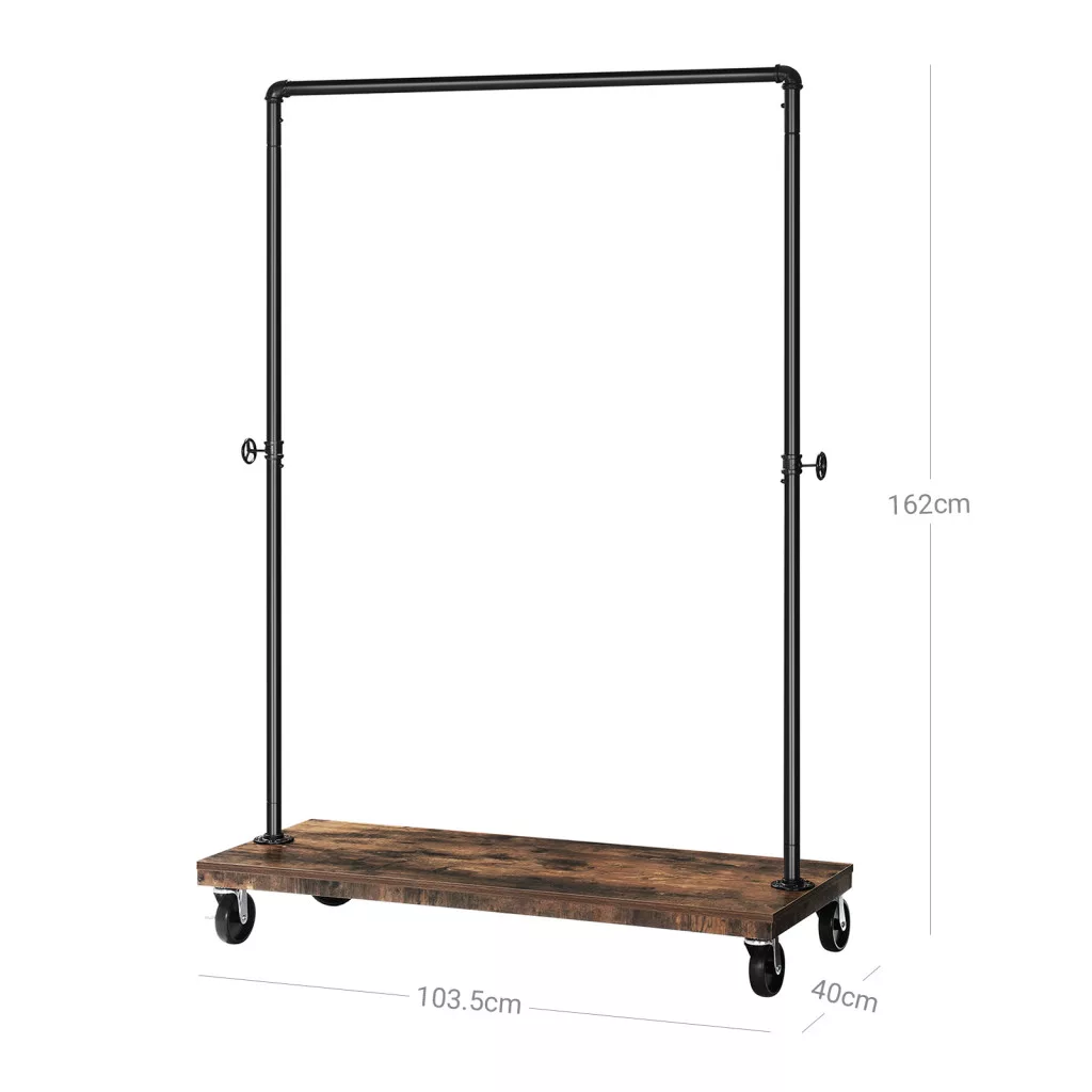 Ez a VASAGLE ruhaállvány tökéletesen ötvözi a funkcionalitást és a stílust. Az ipari csővezetékes kialakítás és a rusztikus fa polc modern industrial megjelenést kölcsönöz, miközben praktikus tárolási megoldást nyújt. A masszív acélszerkezet és a 90 kg-os teherbírás garantálja a tartósságot.