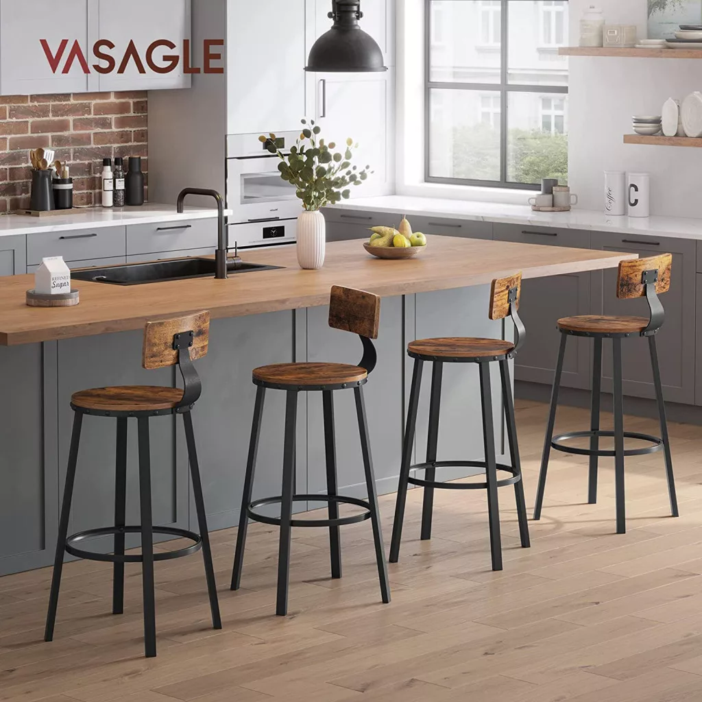 VASAGLE Ipari Bárszék Szett Támlával Rusztikus Barna-Fekete