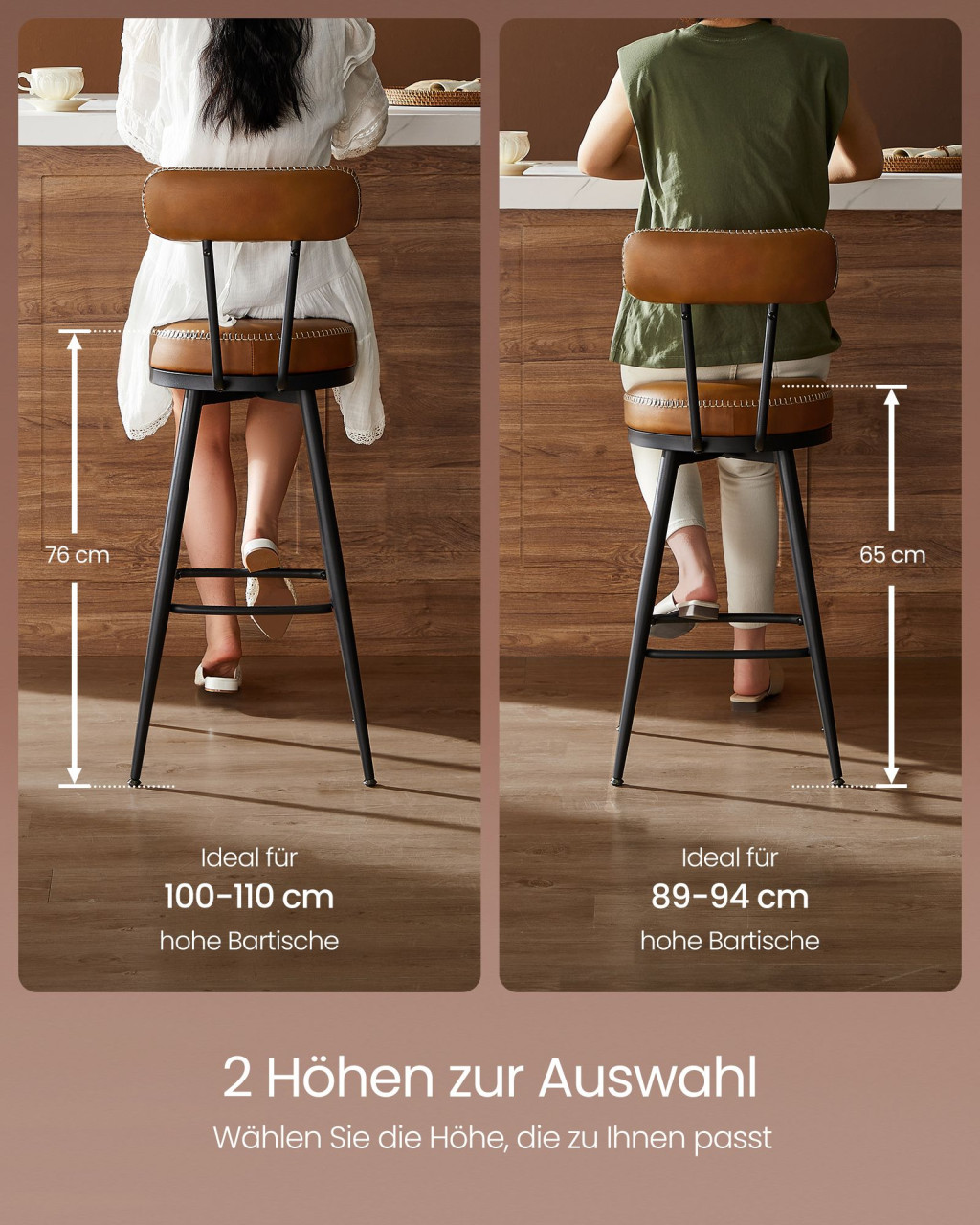 VASAGLE EKHO Forgatható Bárszék Szett Műbőr Háttámlával Karamell Barna