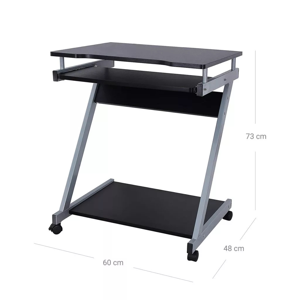 VASAGLE Mobil Számítógépasztal Z-alakú Fekete Görgős Kihúzható Billentyűzettartóval