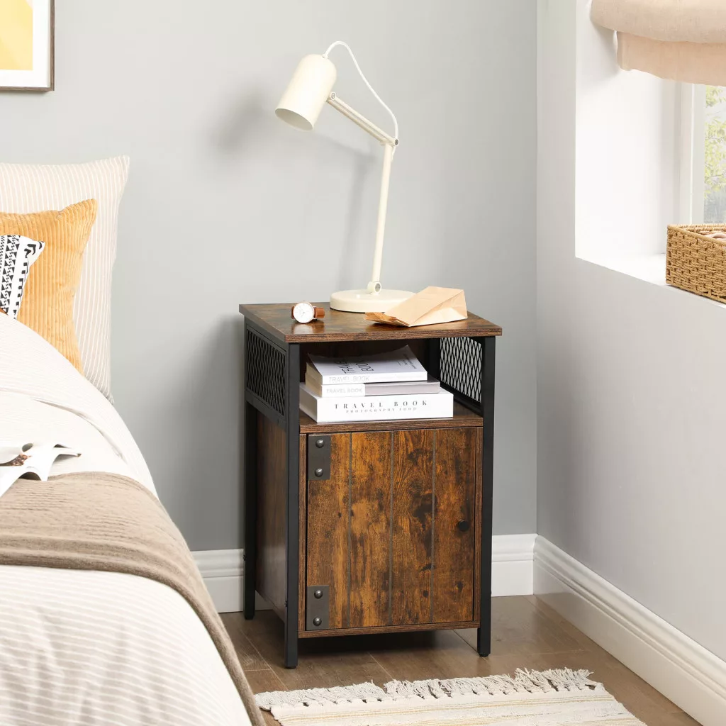 VASAGLE Ipari Stílusú Éjjeliszekrény Rusztikus Barna-Fekete