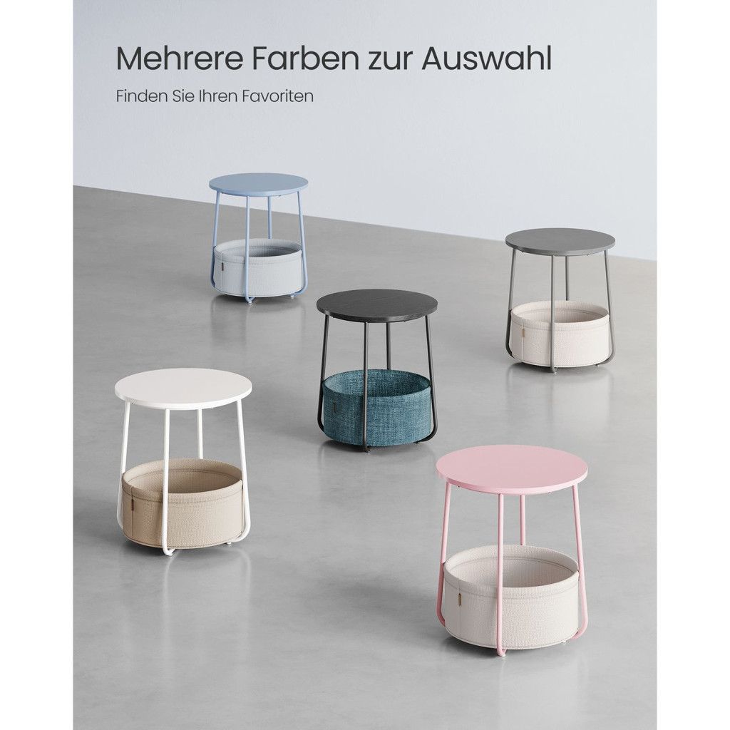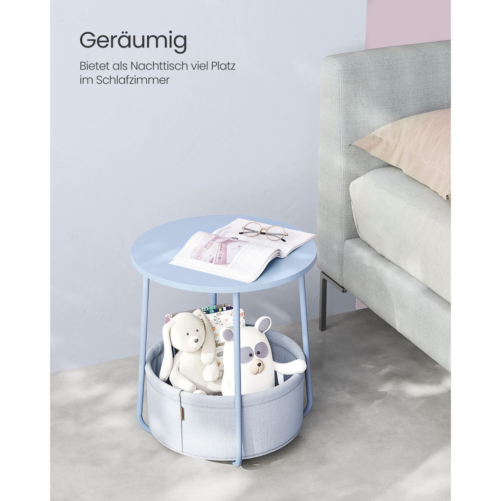 VASAGLE Modern Kerek Kisasztal Tárolókosárral Pasztellkék