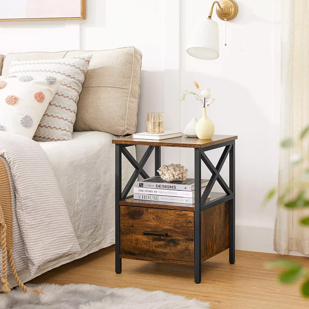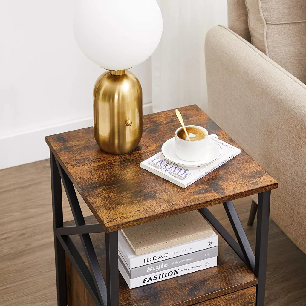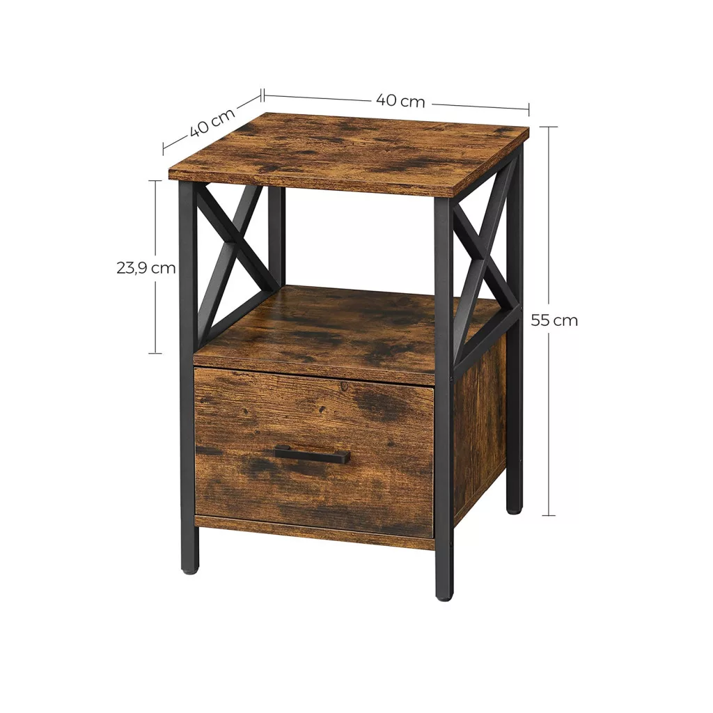 VASAGLE VINCYER Ipari Éjjeliszekrény Fiókkal Rusztikus Barna-Fekete