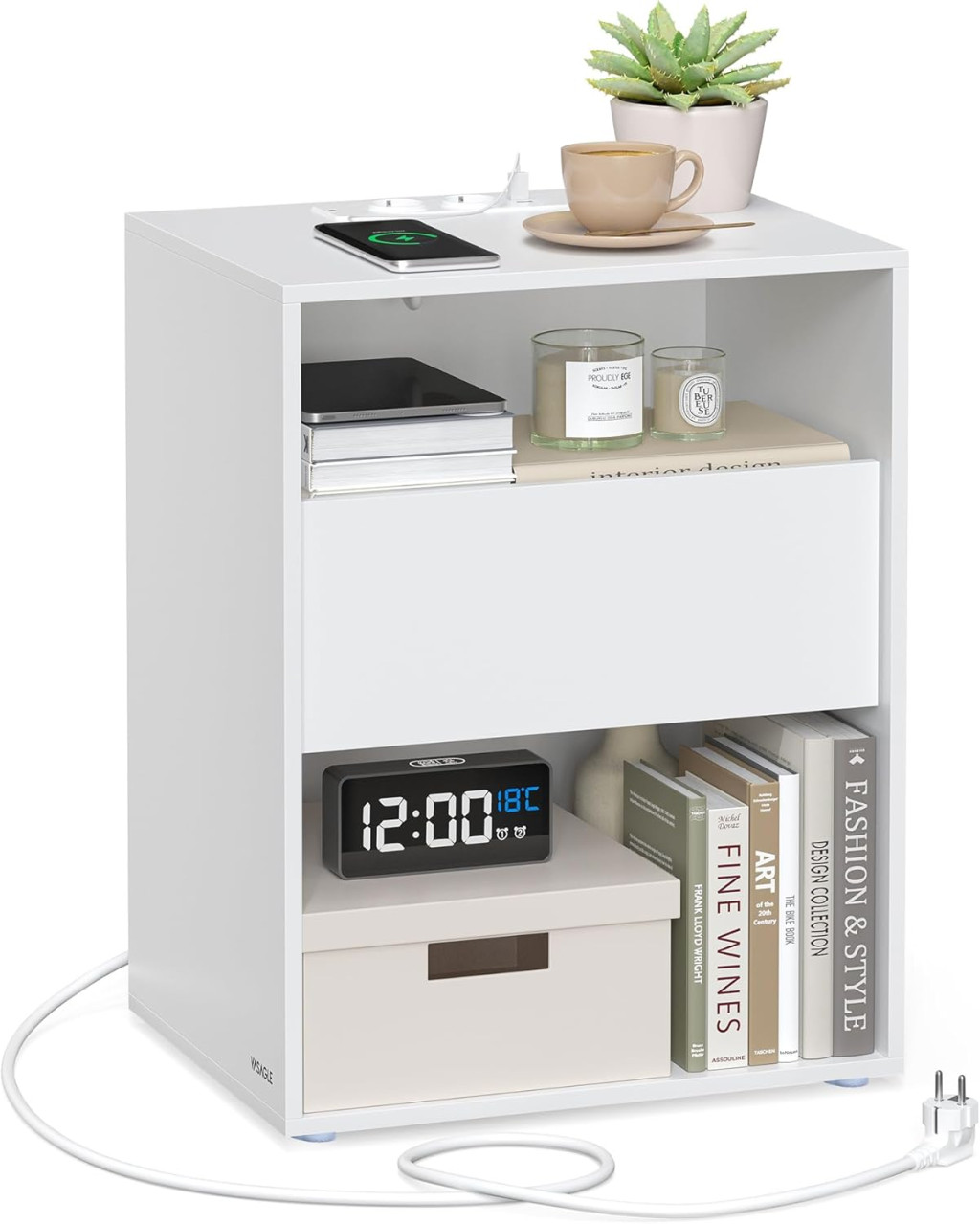 Ez a díjnyertes VASAGLE éjjeliszekrény egyesíti a praktikumot és a modern dizájnt. A szerszám nélküli összeszerelés és a beépített töltőállomás (2 USB port és 2 konnektor) maximális kényelmet biztosít. A matt fehér felület és letisztult vonalak tökéletesen illeszkednek bármilyen modern enteriőrbe.