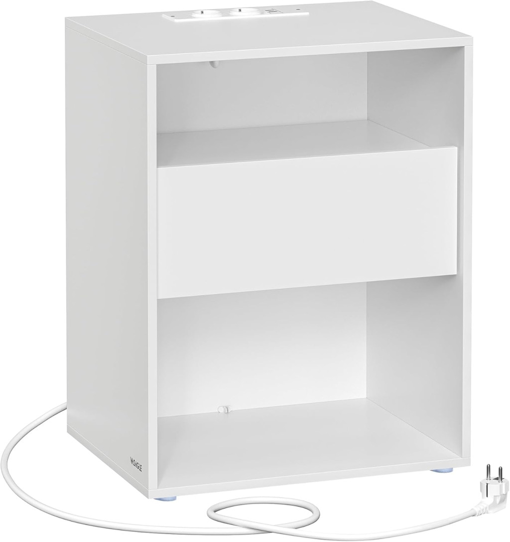 VASAGLE Modern Éjjeliszekrény Beépített Elosztóval Matt Fehér