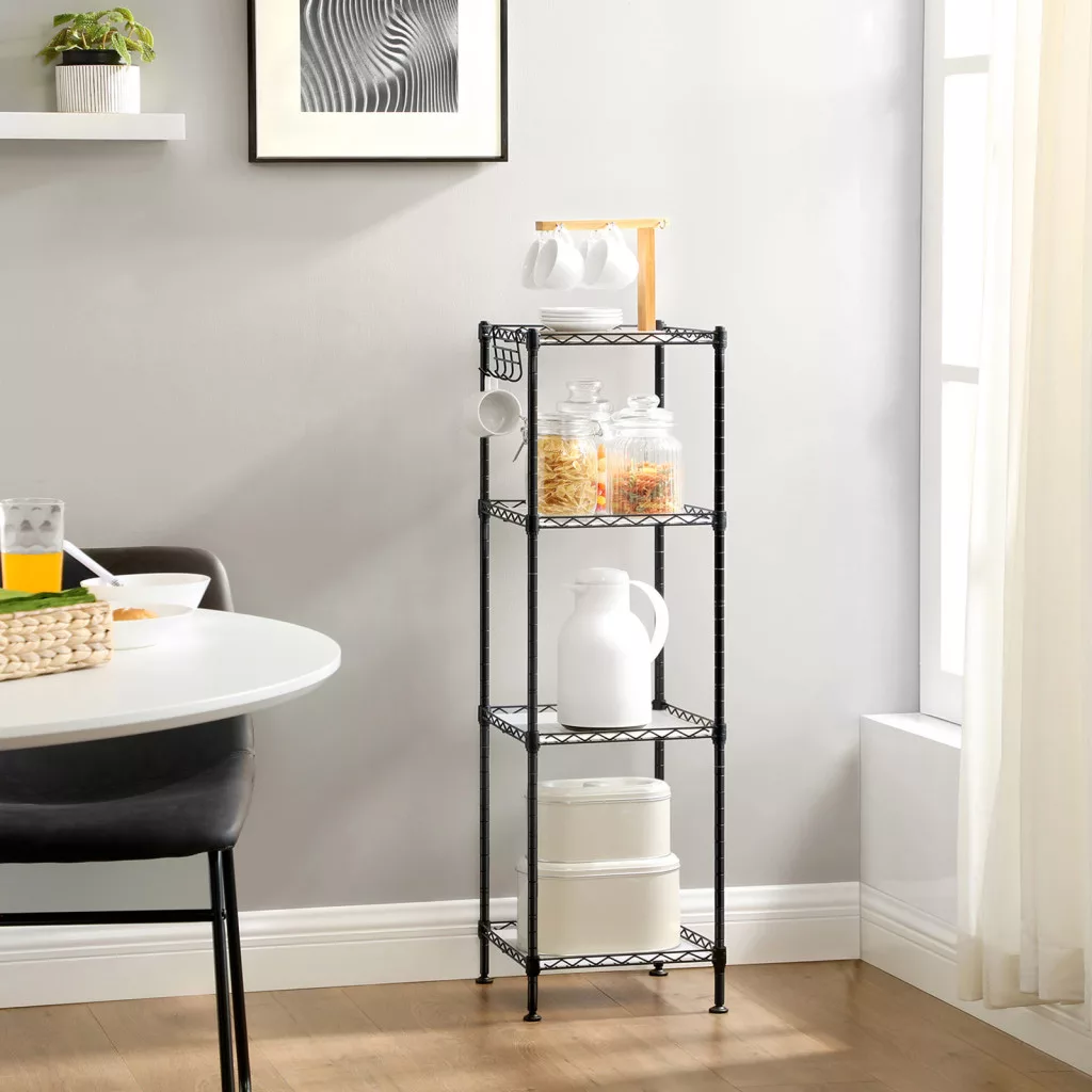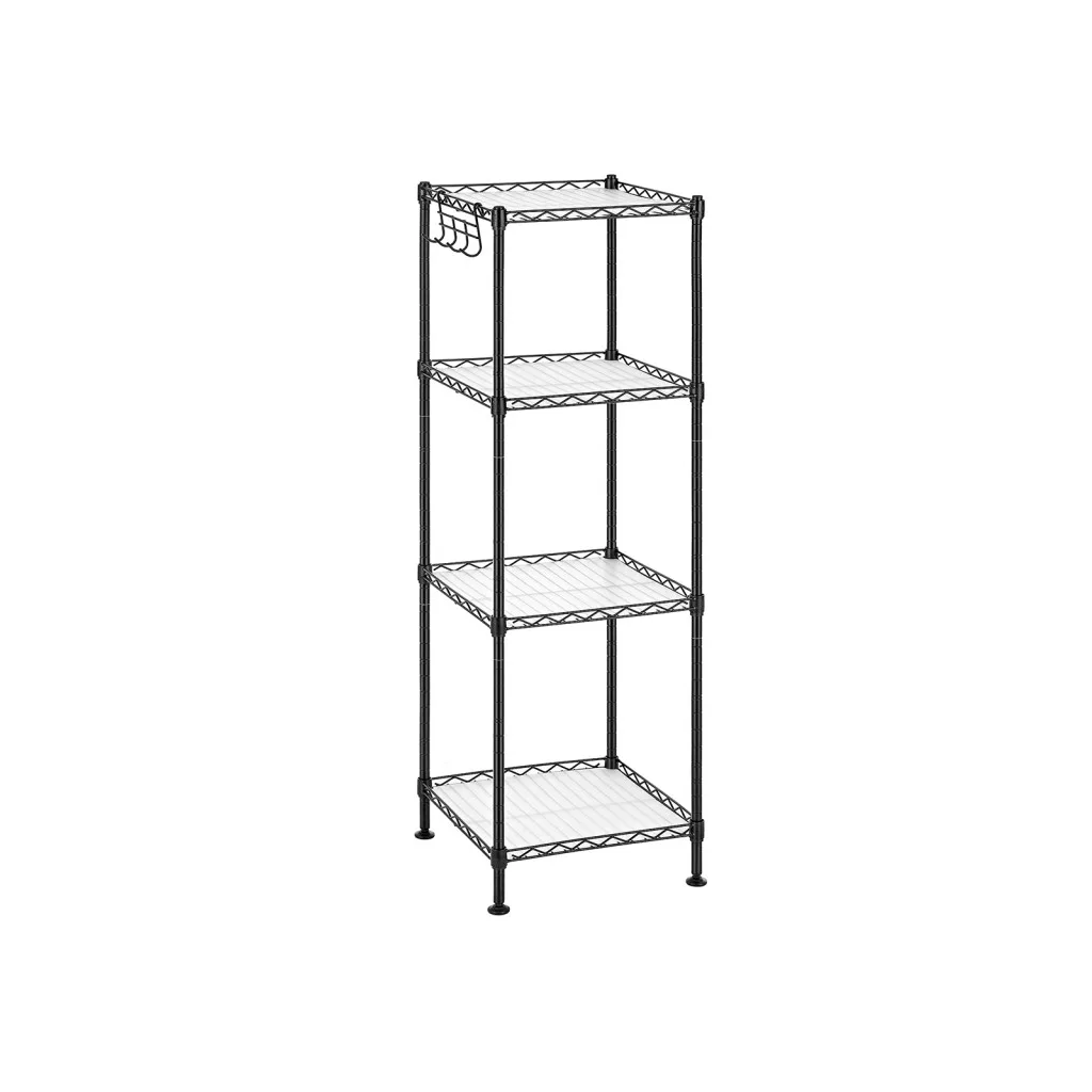 Kompakt, mégis tágas tárolási megoldás fürdőszobájába ez a 4-szintes, fekete porszórt fém állvány, amely mindössze 30x30 cm alapterületen kínál maximális helykihasználást.