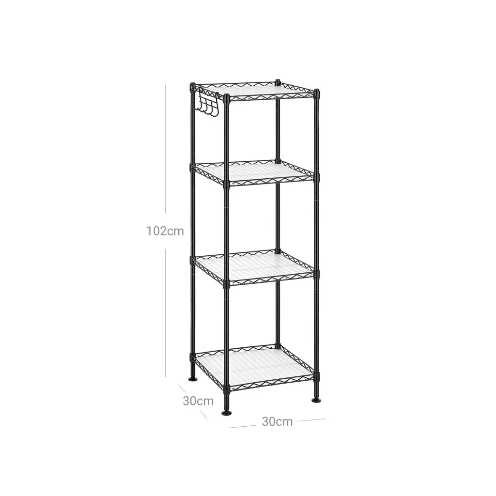 SONGMICS 4-Szintes Fürdőszobai Állvány Fekete Fém Tárolópolc