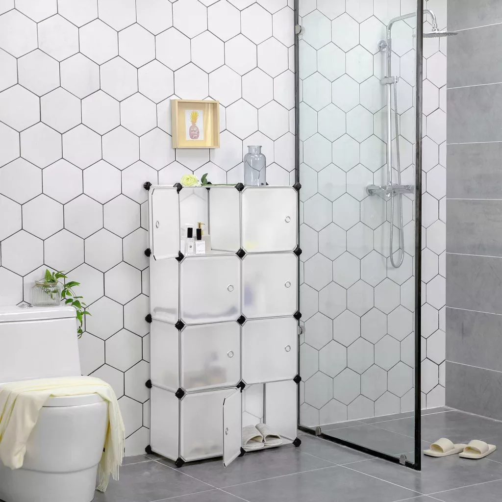 A fehér, félig átlátszó PP műanyag panelek és a stabil fémváz kombinációja nem csak esztétikus megjelenést, de tartós használhatóságot is garantál. Az egyszerűen összeállítható szerkezet rekeszenként 10 kg teherbírással rendelkezik, így megbízható tárolóhelyet biztosít különböző tárgyak számára.