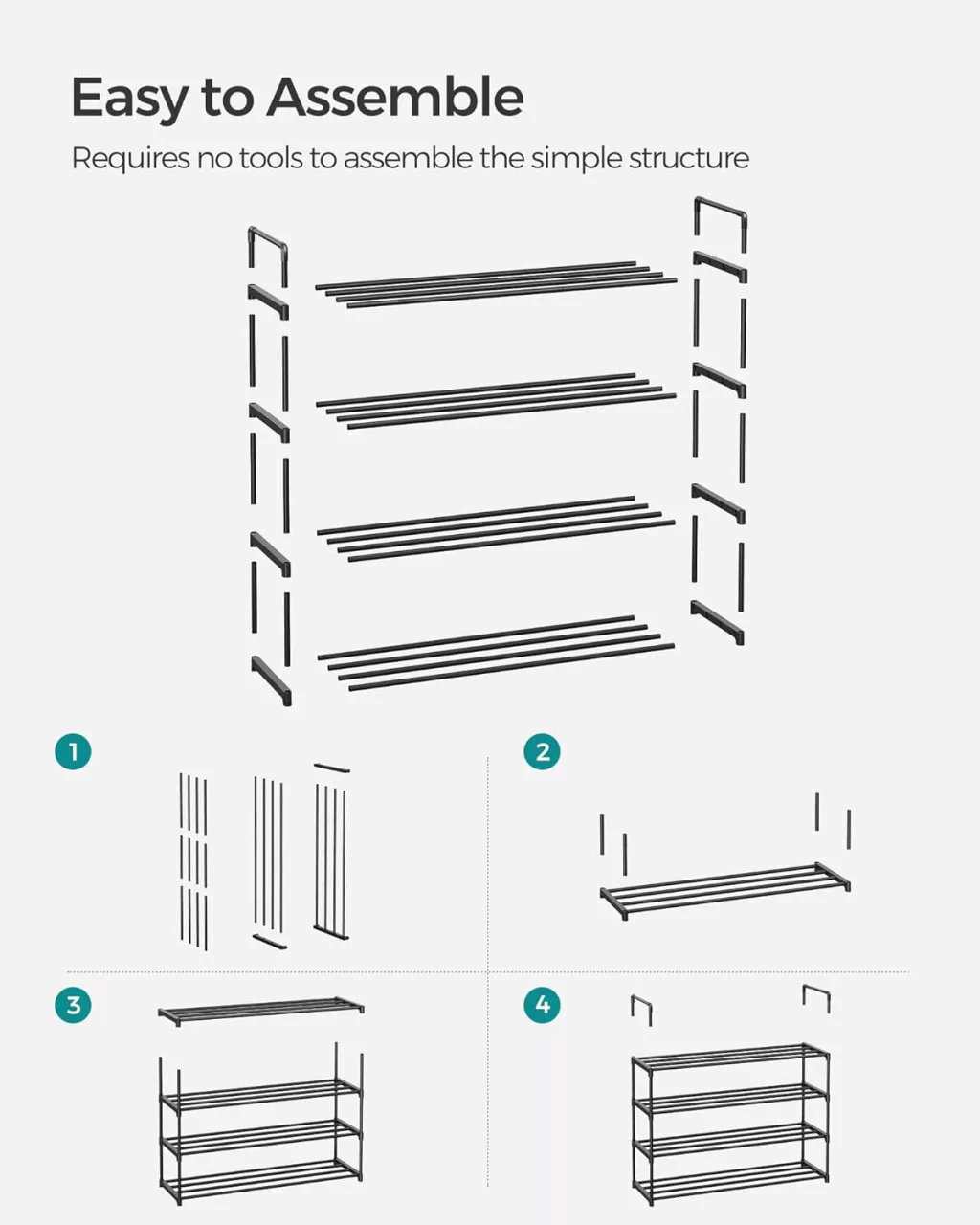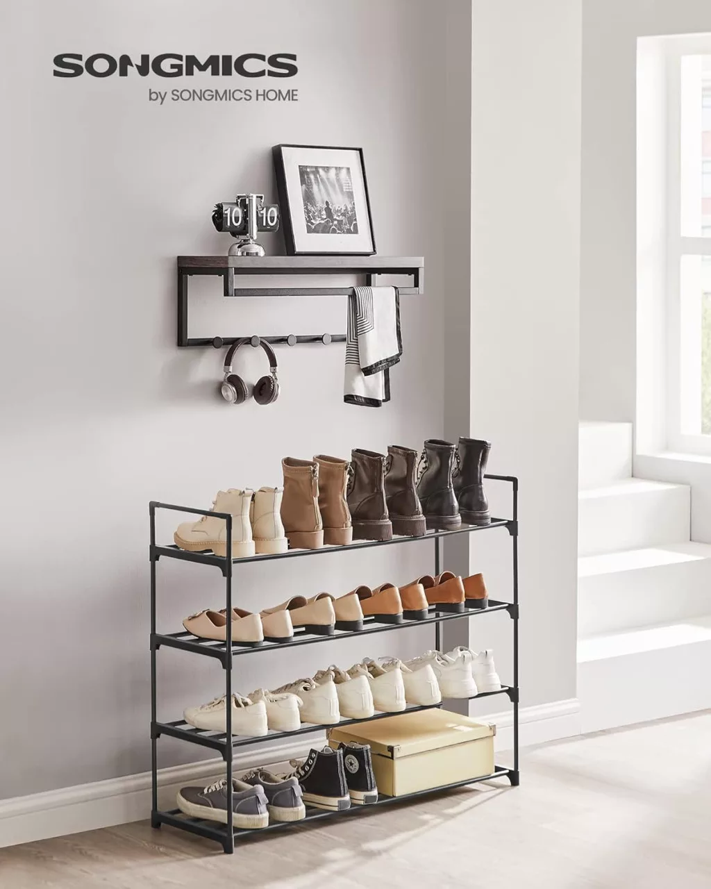 SONGMICS 4-Szintes Fém Cipőtároló Állvány Fekete