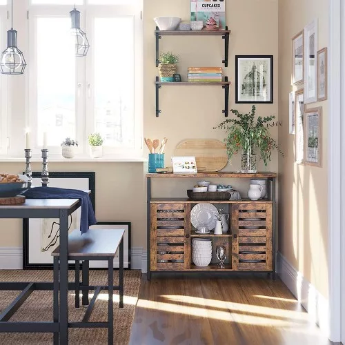 Ez a VASAGLE tárolószekrény tökéletesen ötvözi a funkcionalitást és a stílust. A rusztikus barna felületek és a fekete fém váz industrial megjelenést kölcsönöz, míg a zsalus ajtók mögötti polcok, valamint a nyitott tárolórekeszek maximális helykihasználást biztosítanak.