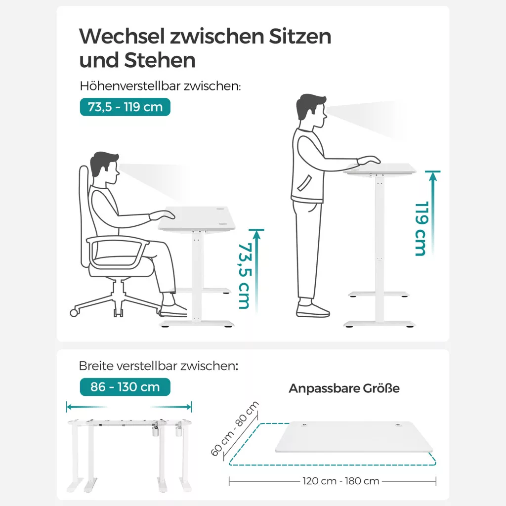 SONGMICS Állítható Magasságú Elektromos Íróasztal Fehér
