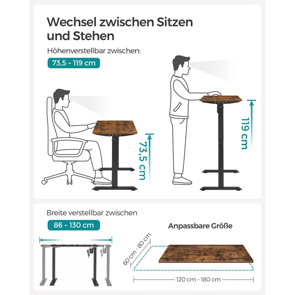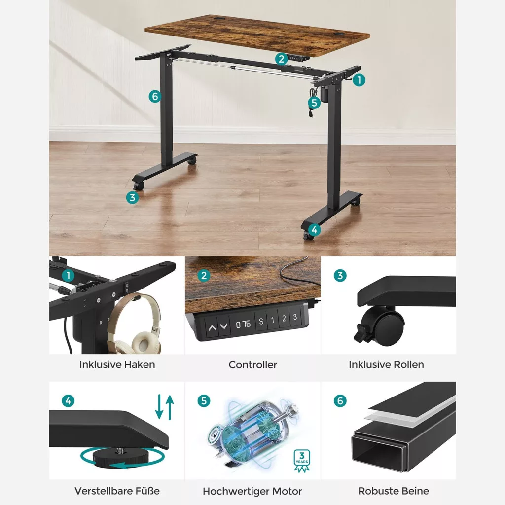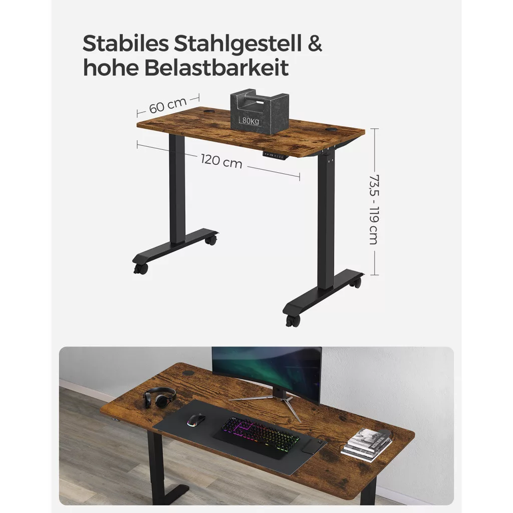 SONGMICS Állítható Magasságú Elektromos Íróasztal Vintage Barna/Fekete