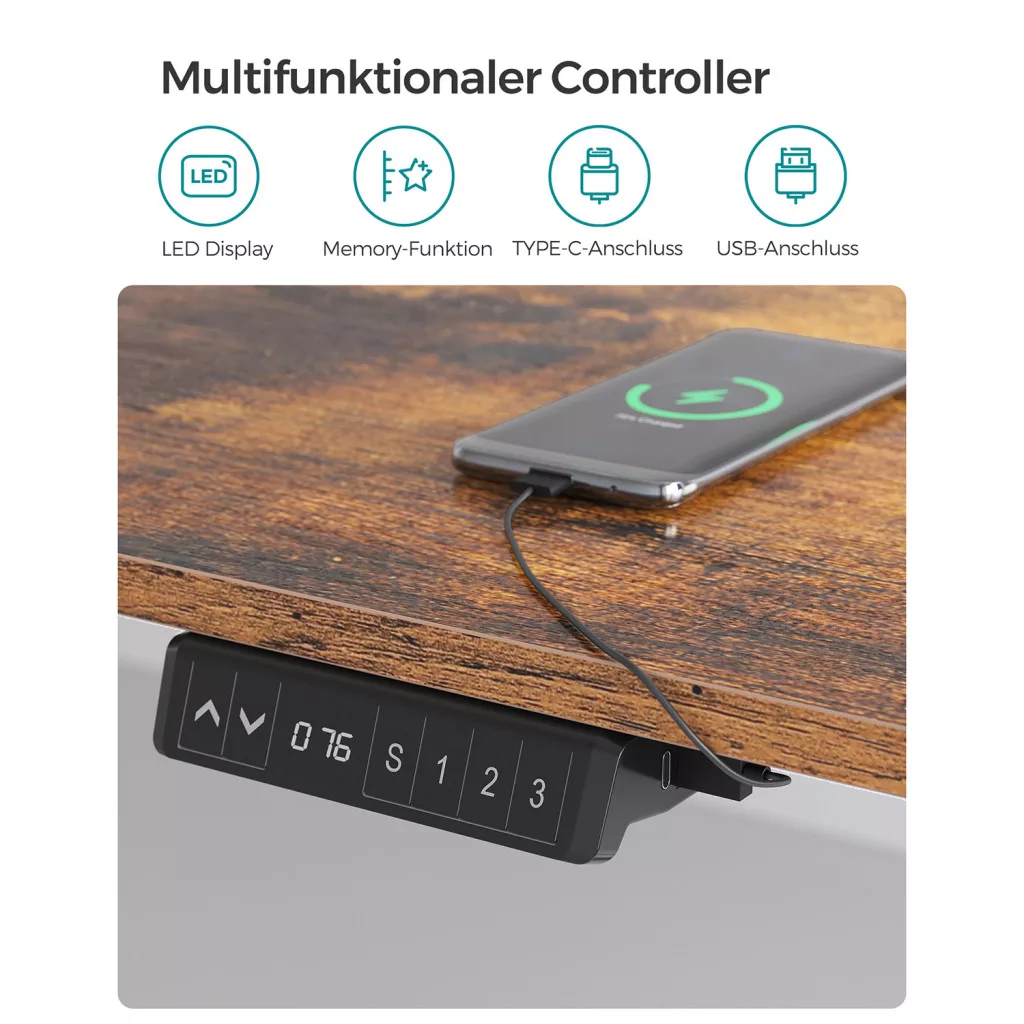 Az asztal különlegessége a három magasság memória funkció és az USB/TYPE-C csatlakozó, amely még kényelmesebbé teszi a mindennapi használatot. A beépített ütközésvédelem és a stabil szerkezet maximális biztonságot garantál.