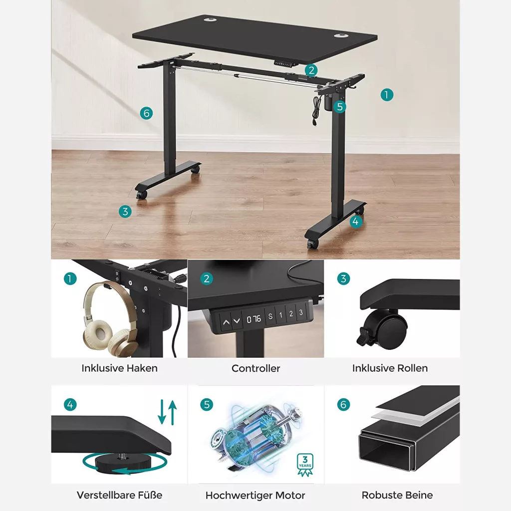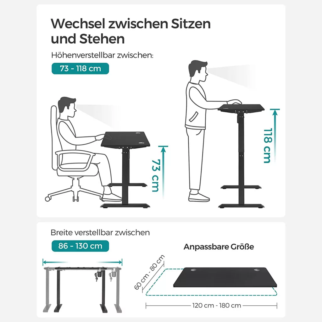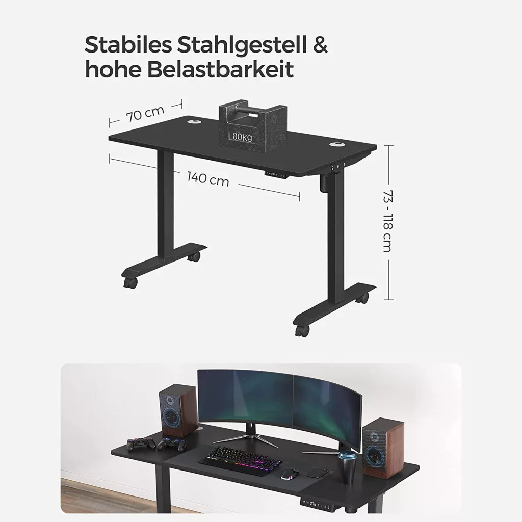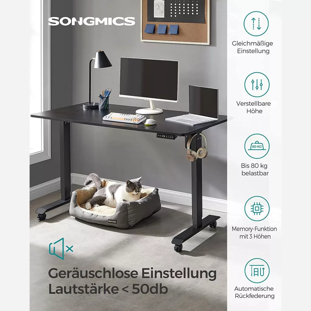 SONGMICS Állítható Magasságú Elektromos Íróasztal Memória Funkcióval Fekete