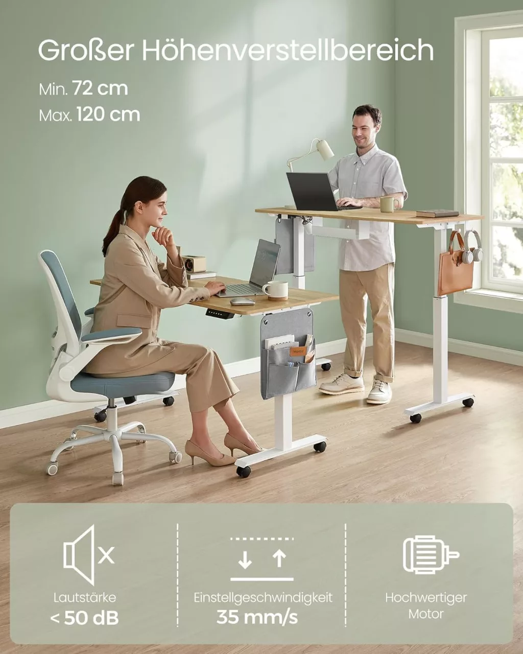 • Elektromos magasságállítás: Kényelmes váltás az ülő és álló pozíció között