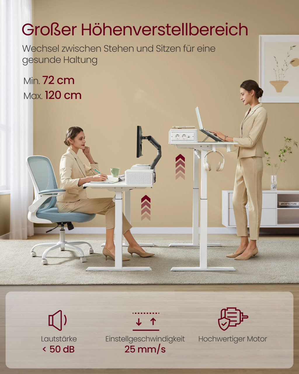 • Egészséges testtartás az elektromos magasságállításnak köszönhetően