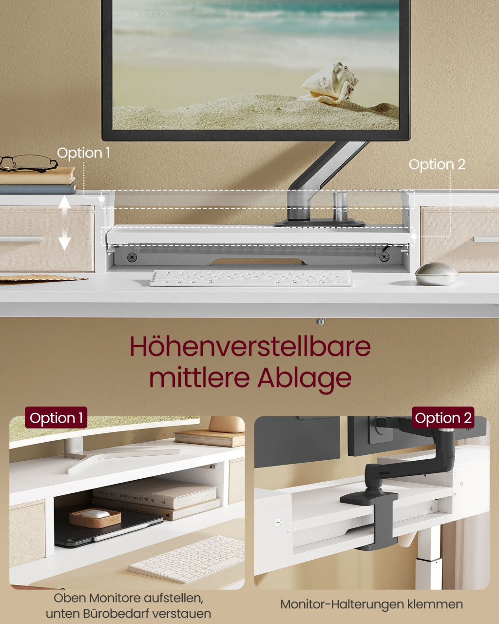 Modern, elektromosan állítható magasságú íróasztal beépített monitortartóval, USB töltőportokkal és memória funkcióval a maximális munkakomfort érdekében.