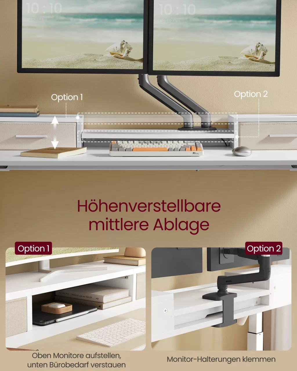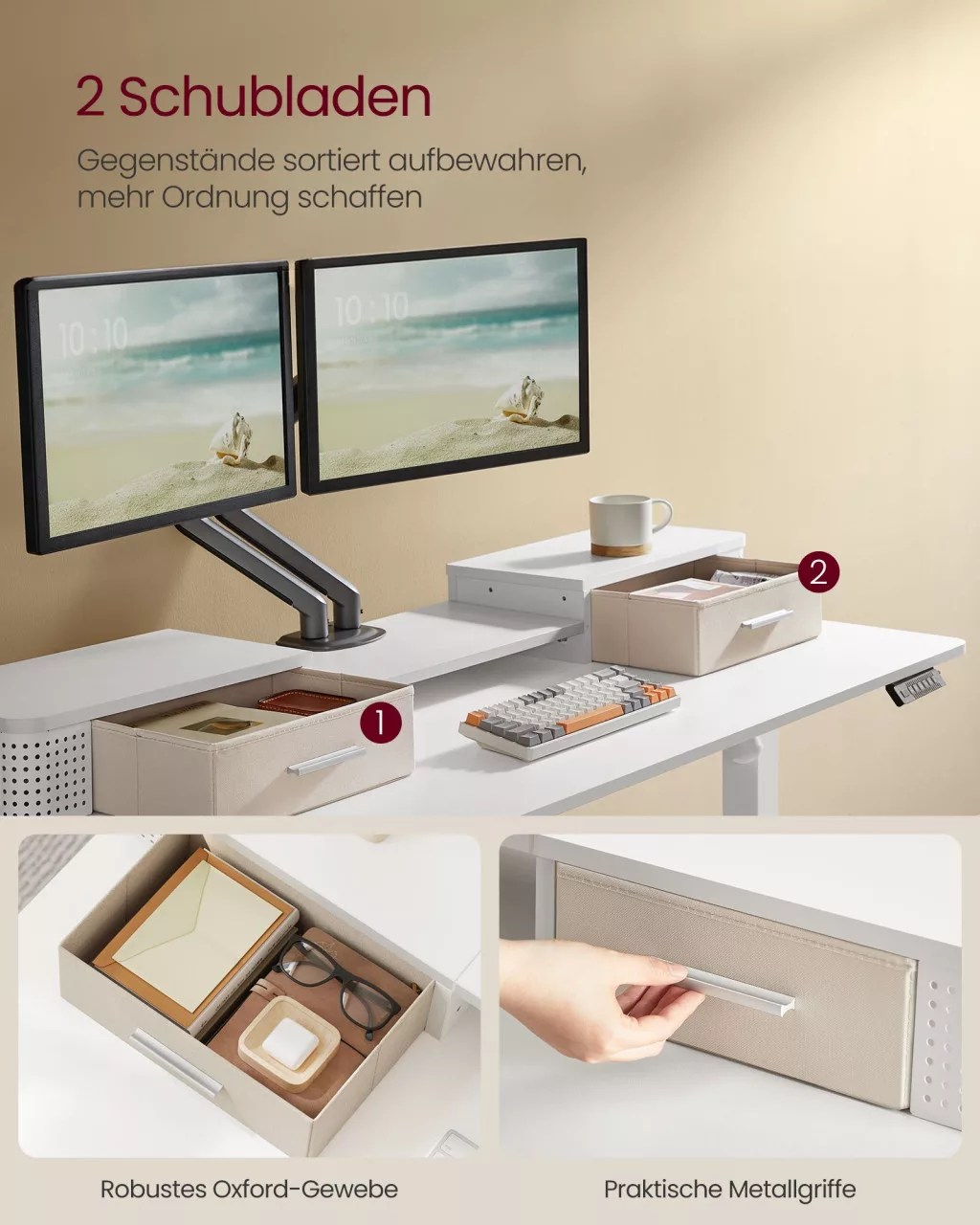 VASAGLE Smart Elektromos Állítható Magasságú Íróasztal Monitortartóval Felhőfehér