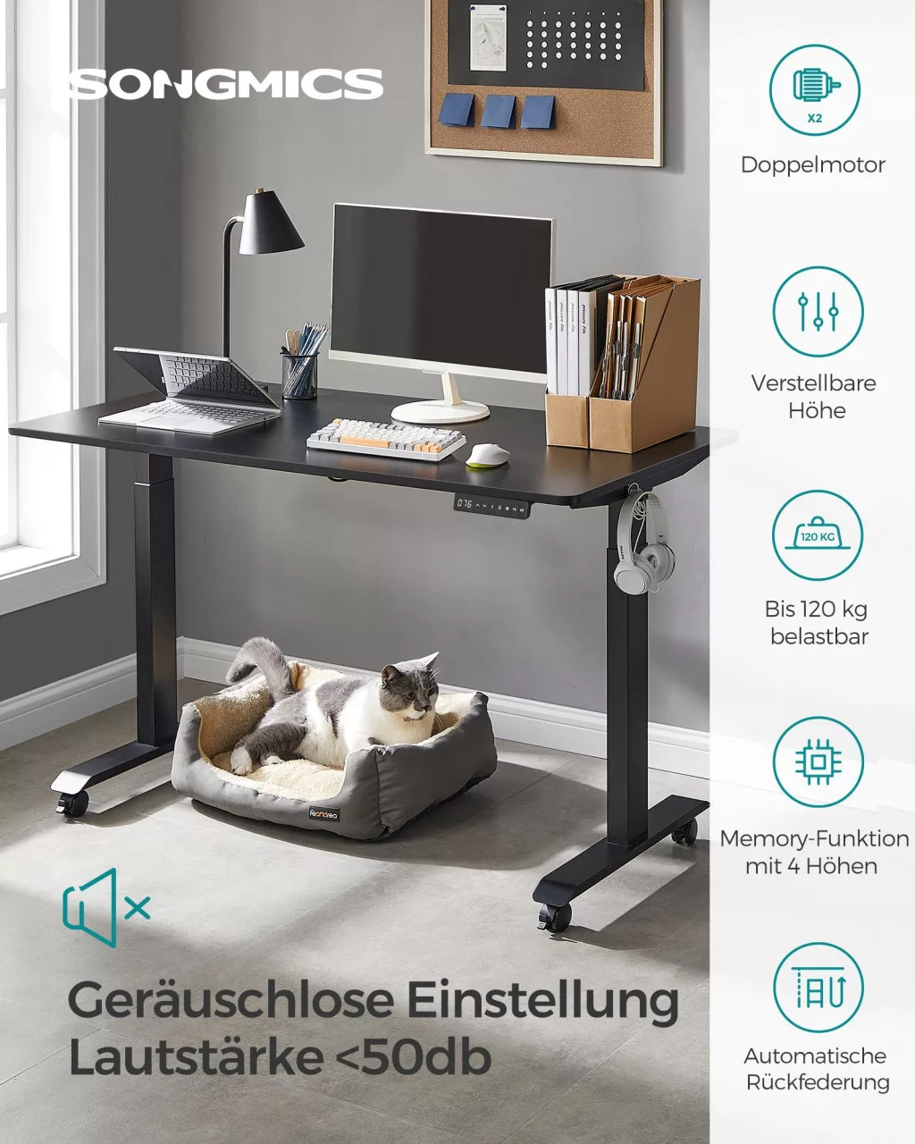 SONGMICS Állítható Magasságú Elektromos Íróasztal Dupla Motorral Fekete