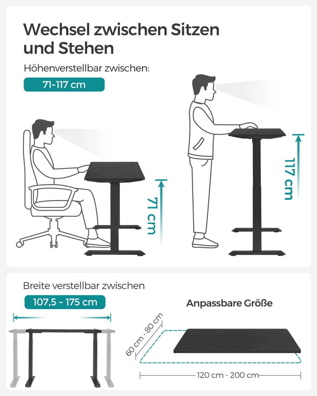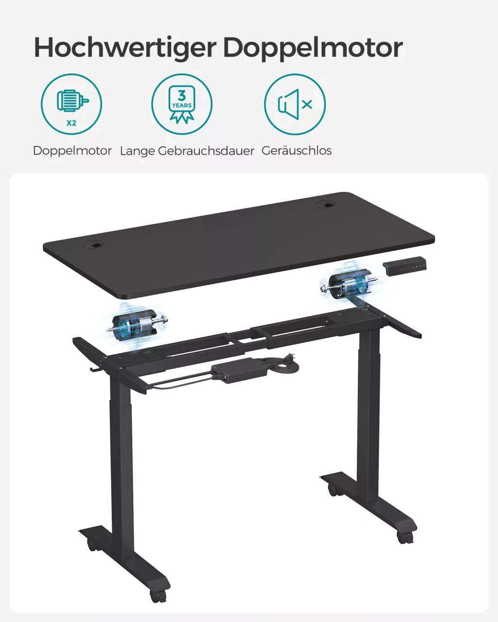 SONGMICS Állítható Magasságú Elektromos Íróasztal Dupla Motorral Fekete