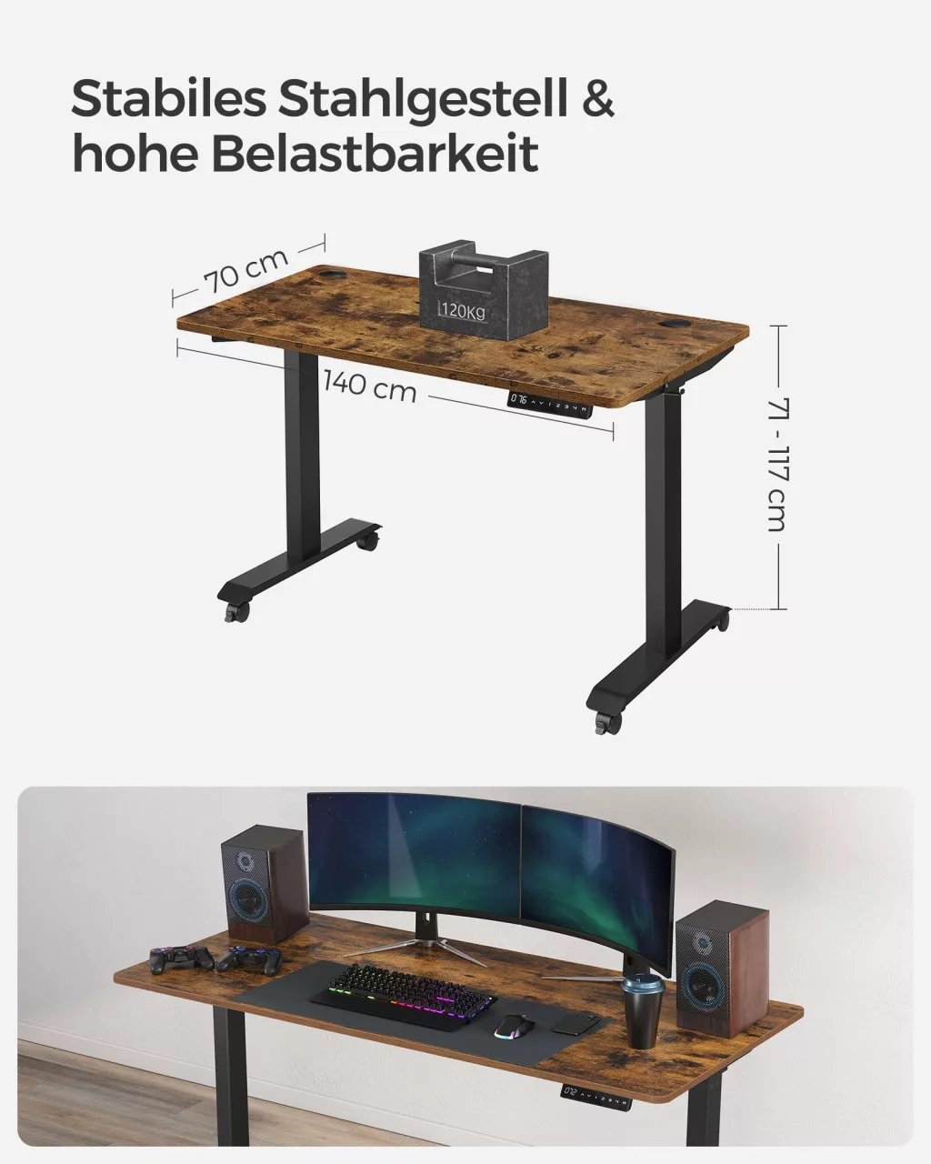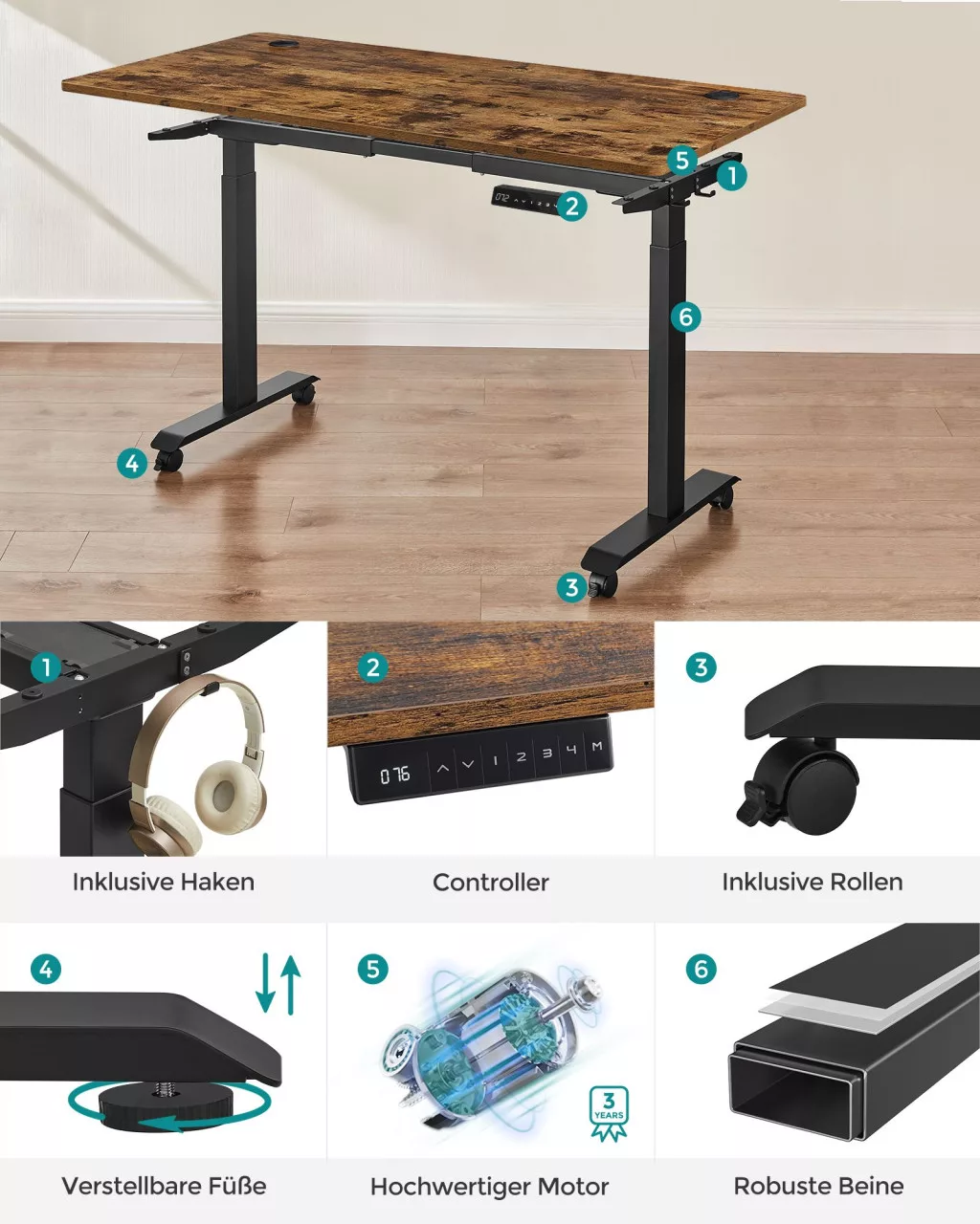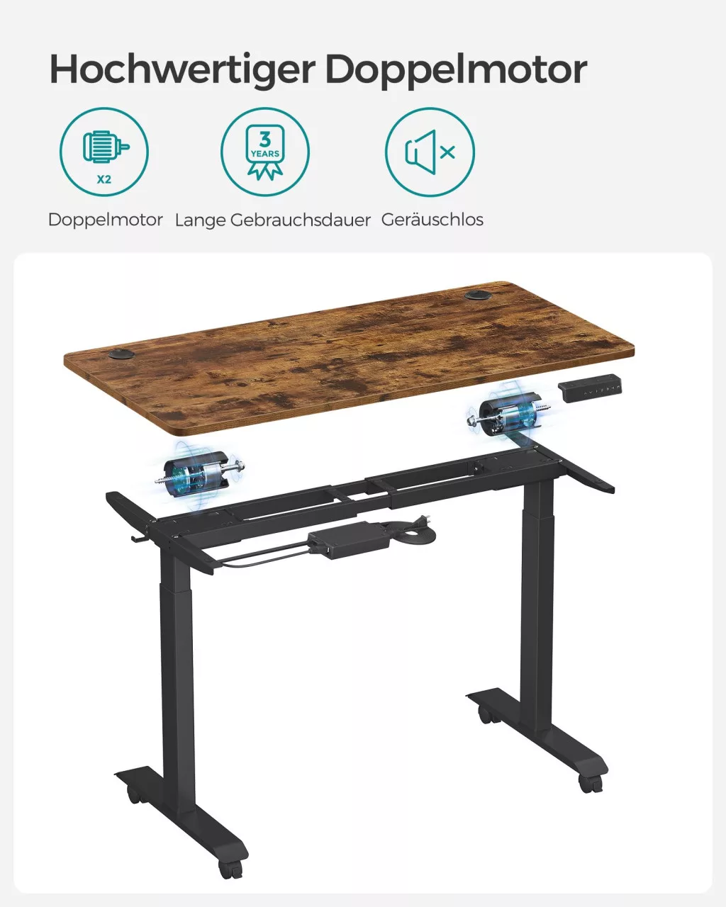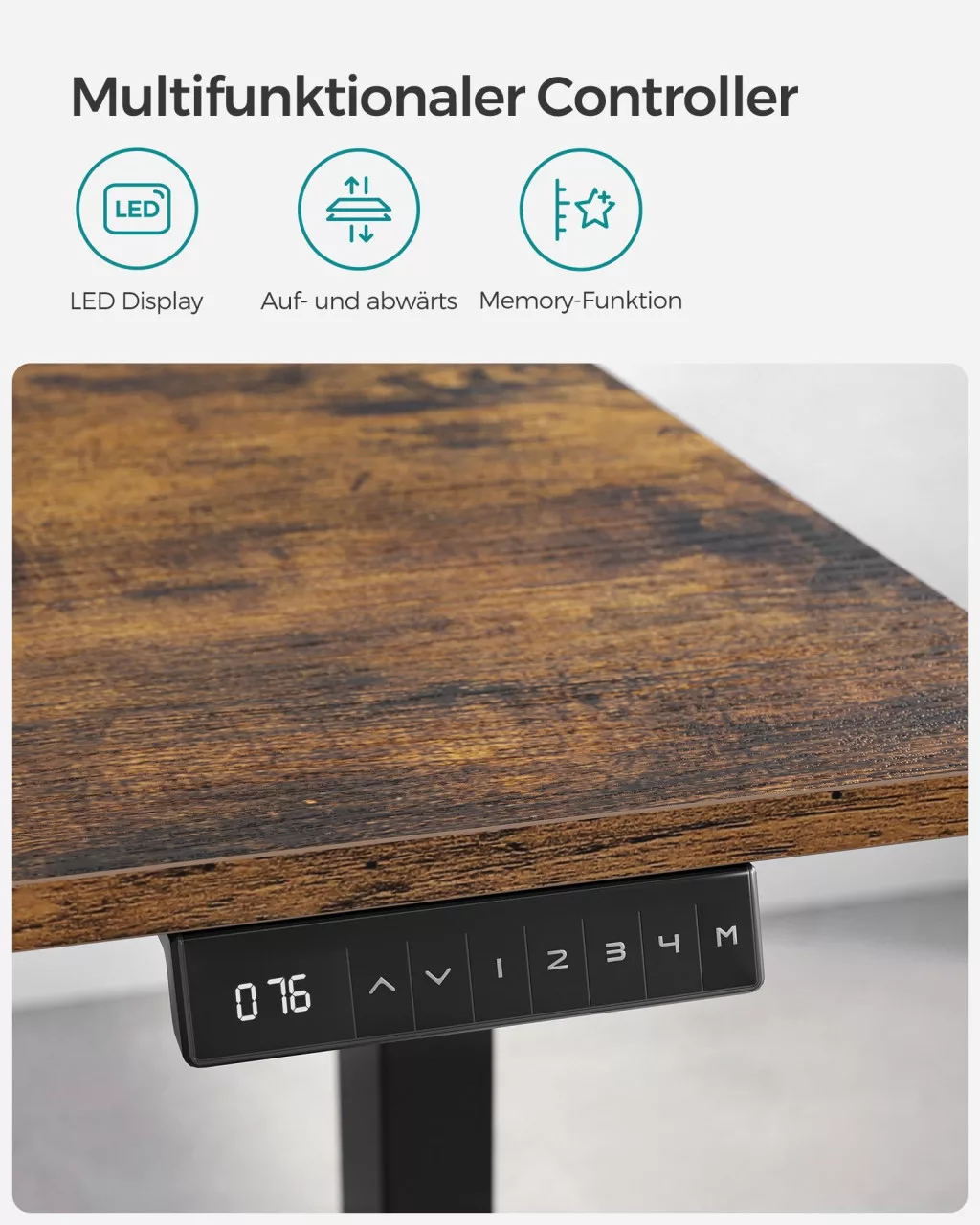 SONGMICS Elektromos Állítható Magasságú Íróasztal Vintage Barna-Fekete