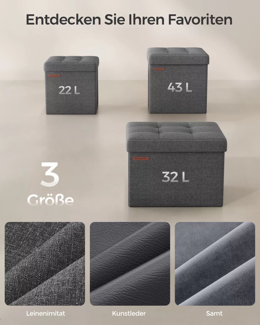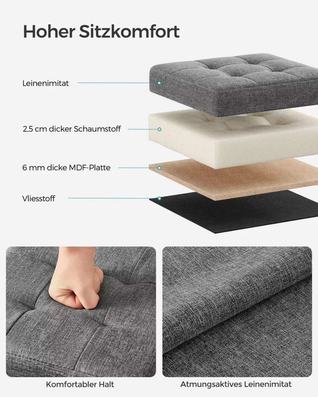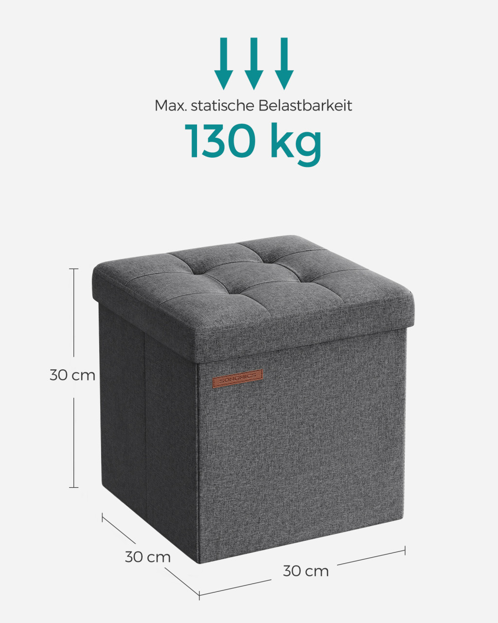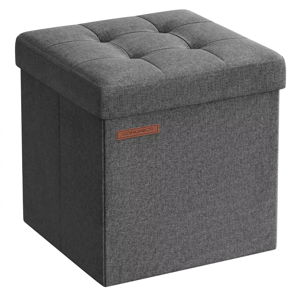 SONGMICS Összecsukható Tárolós Ülőke Sötétszürke Len Hatású Kárpittal
