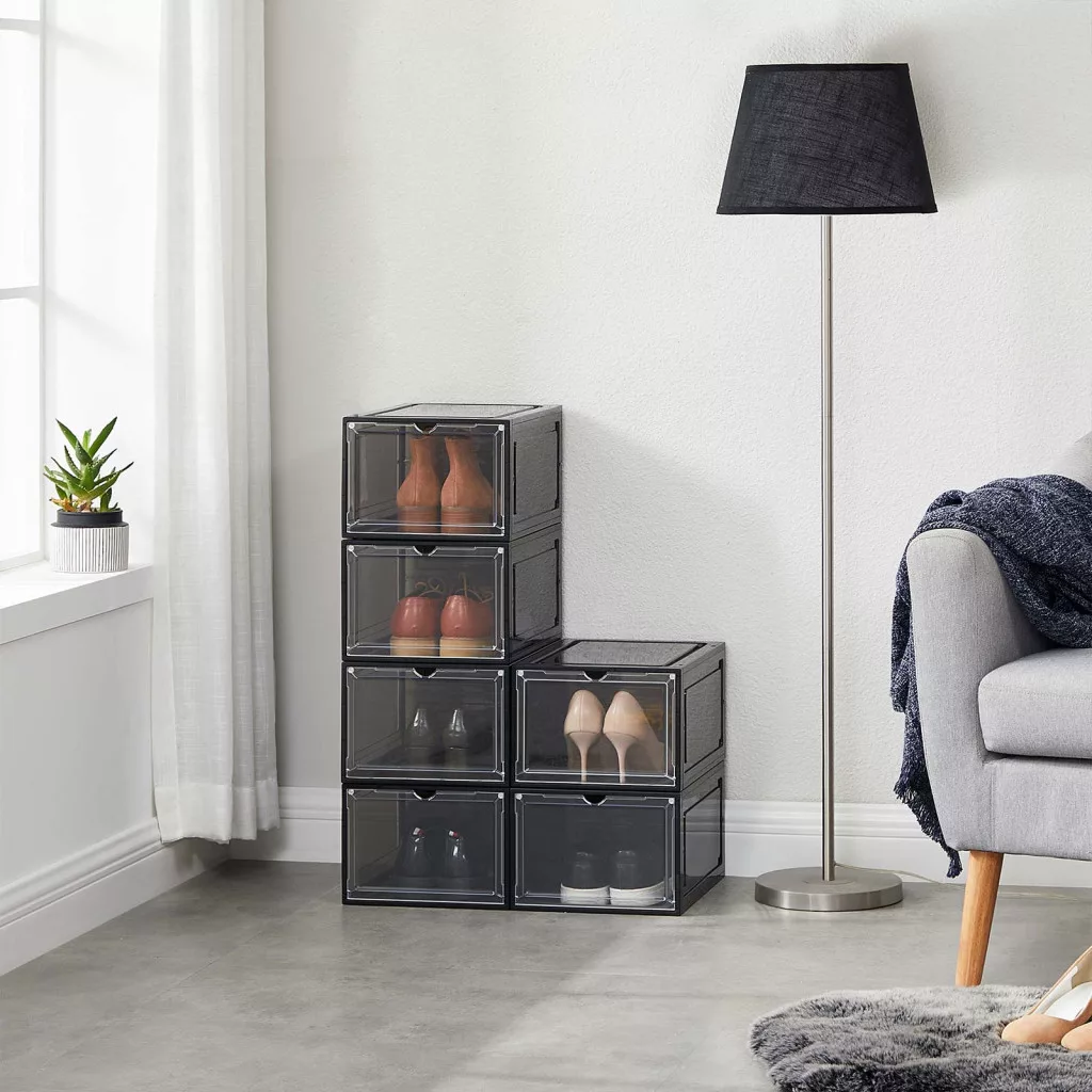 A SONGMICS cipőtároló dobozok forradalmasítják a cipők tárolását az egyedülálló, elöl nyíló átlátszó ajtókkal. A moduláris rendszer lehetővé teszi a dobozok tetszőleges elrendezését - építhet belőlük vertikális tornyot vagy horizontális tárolórendszert. Az átlátszó ajtóknak köszönhetően azonnal megtalálja a keresett cipőt.