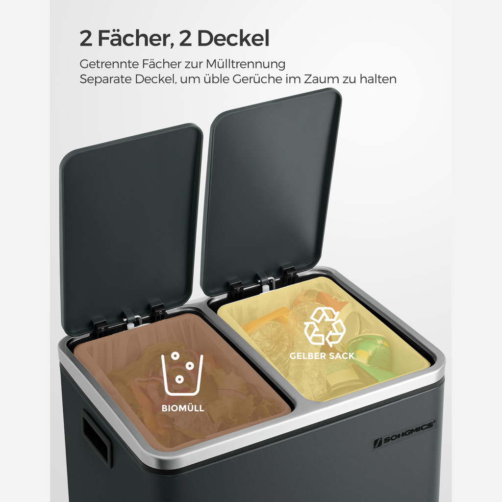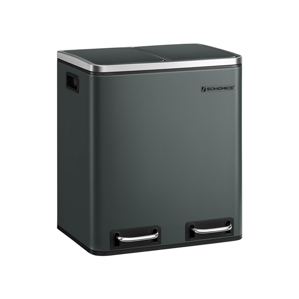 SONGMICS Dupla Szelektív Hulladékgyűjtő Acél Pedálos Szemetes 2x15L Antracitszürke
